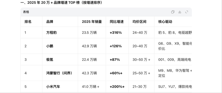 高端市场,需要更智能、更自动化的产品,以25年的销量增速来看,增长最快的20万以上品牌,分别为: