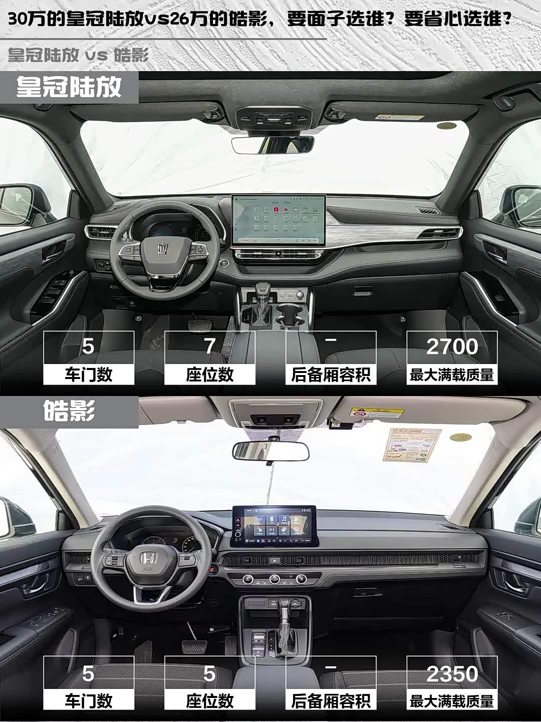 30万的皇冠陆放vs26万的皓影,要面子选谁?要省心选谁?