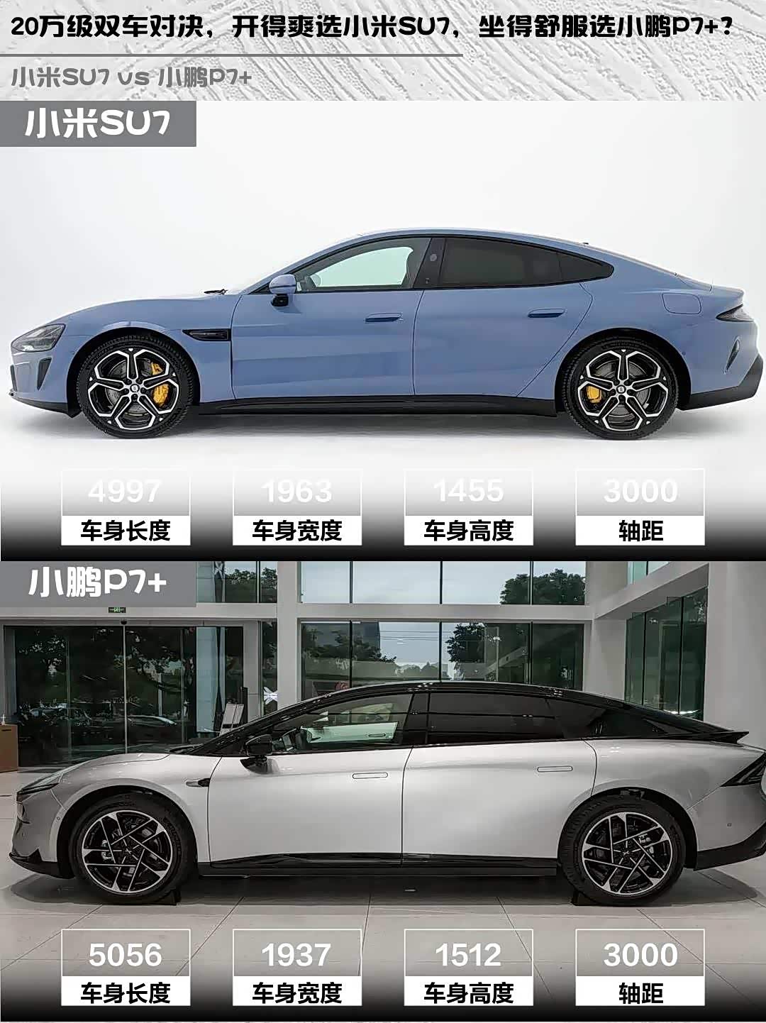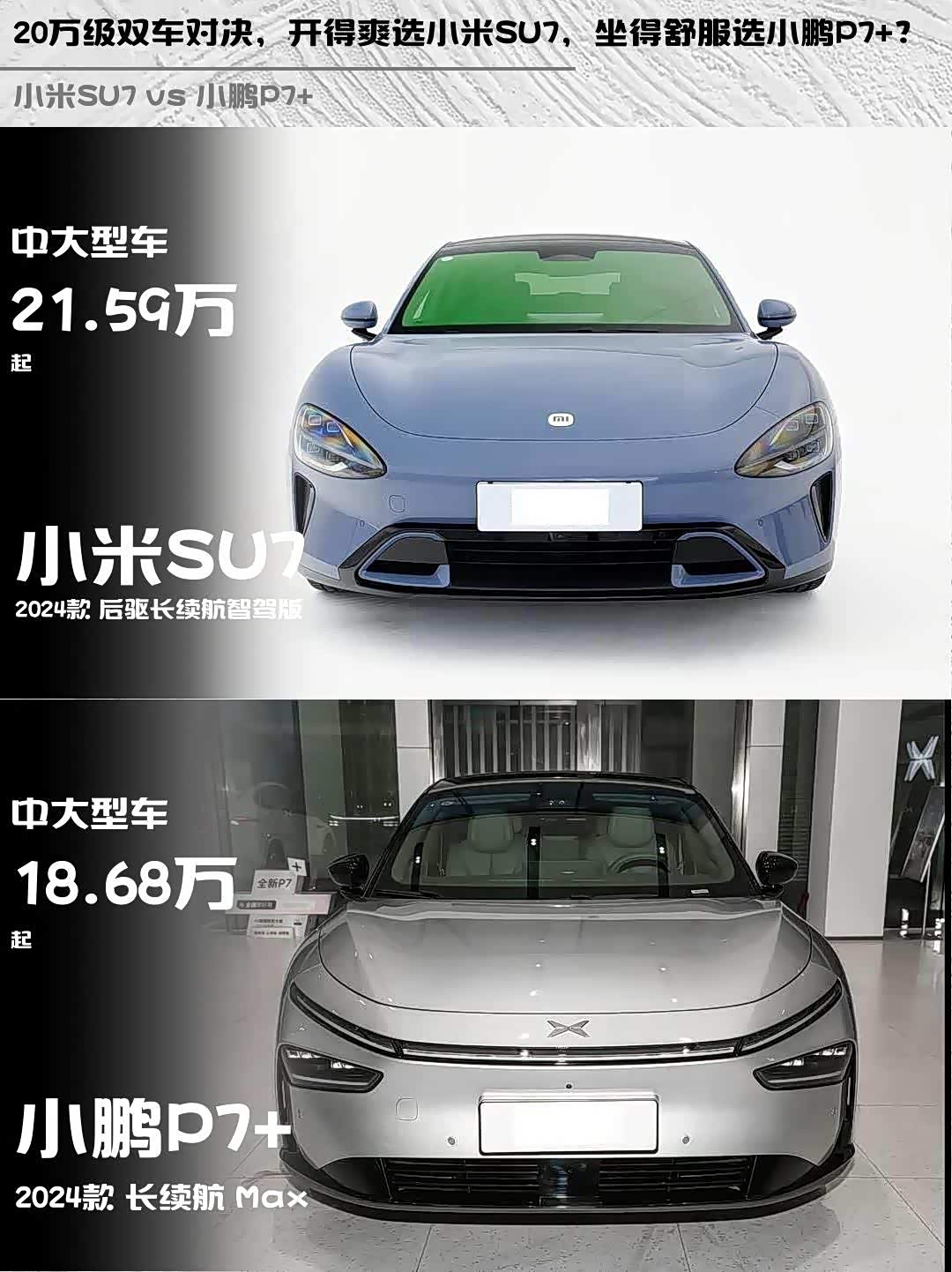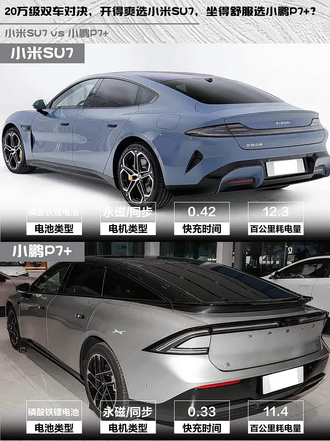 最近深度试驾了 小米SU7(参数|询价) 2024款 后驱长续航智驾版和小鹏P7+ 2024款 长续航 Max,两款都是20万级纯电轿跑的热门选手,但性格差异蛮大的!分享一下真实对比感受👇