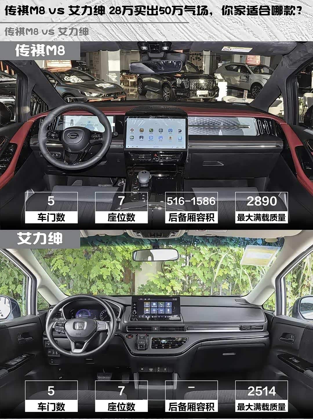 传祺M8 vs 艾力绅 28万买出50万气场,你家适合哪款?