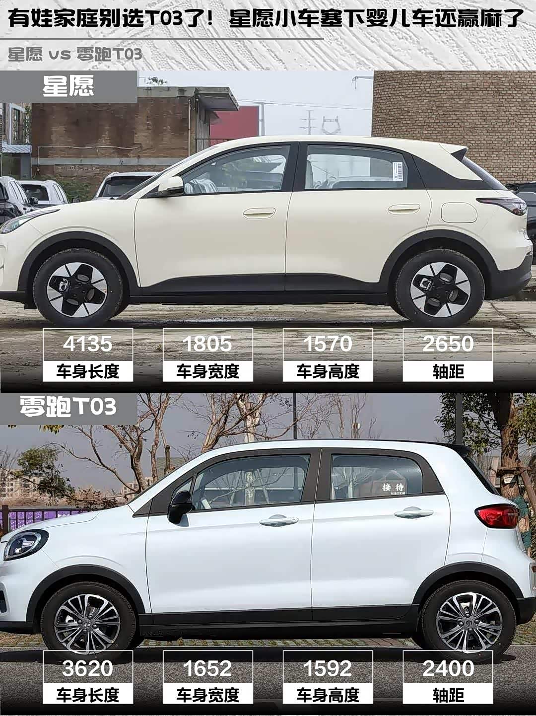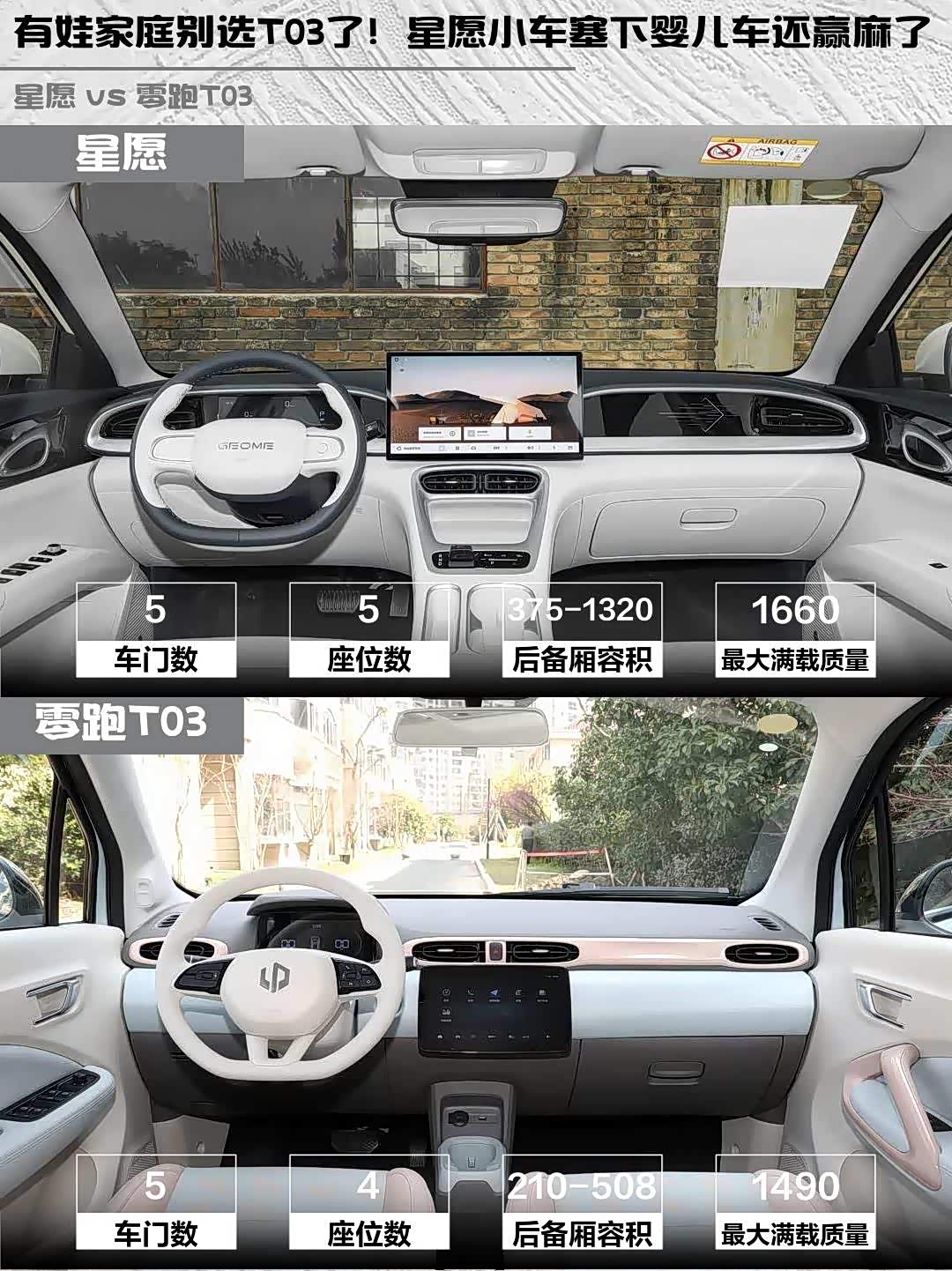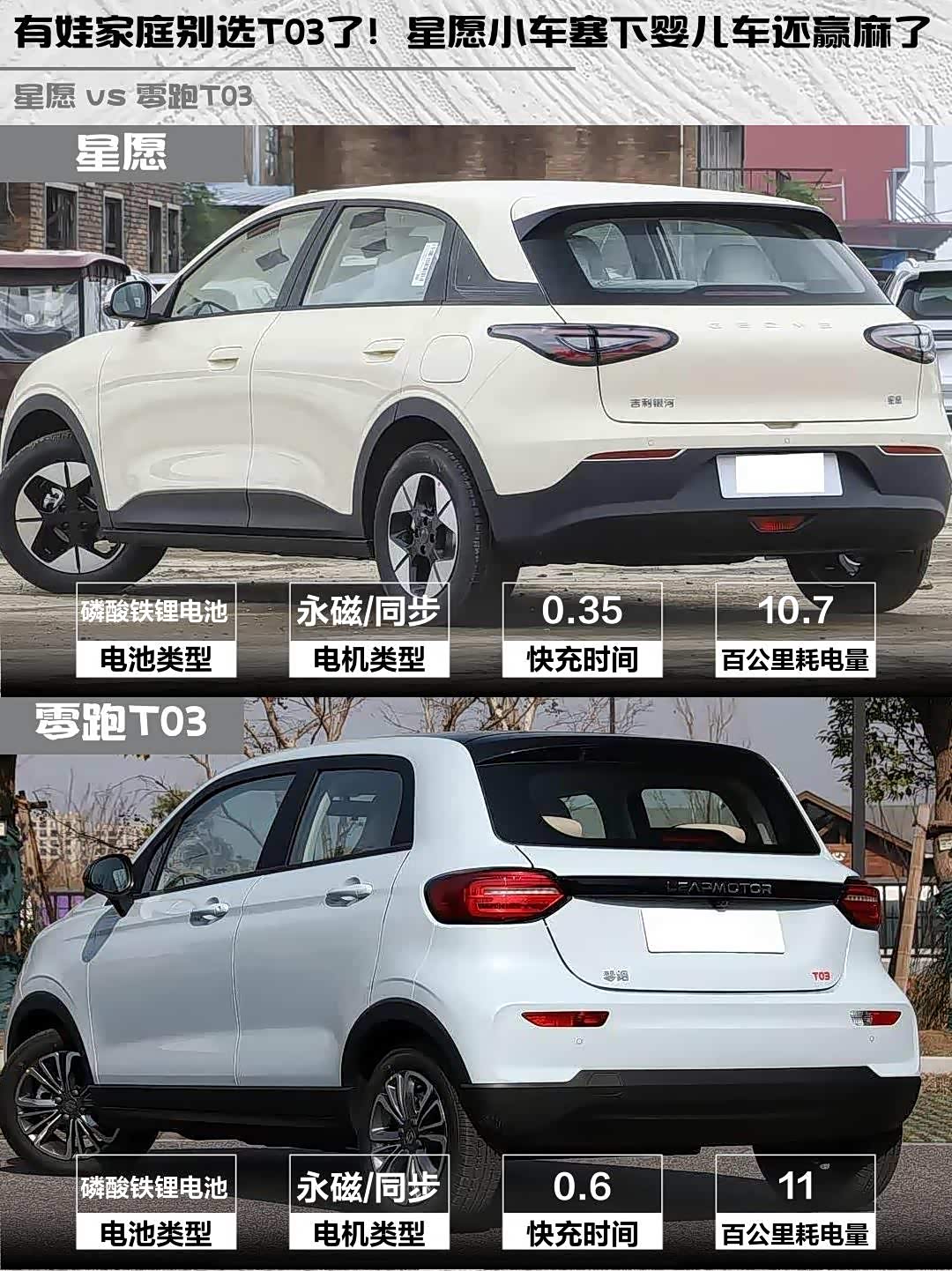 单身/小两口预算有限选T03,通勤代步够用还省钱;有娃家庭或追求品质直接冲星愿,大空间+高配置用起来真香!最近星愿还有限时金融政策,算下来月供差不了几百块~
