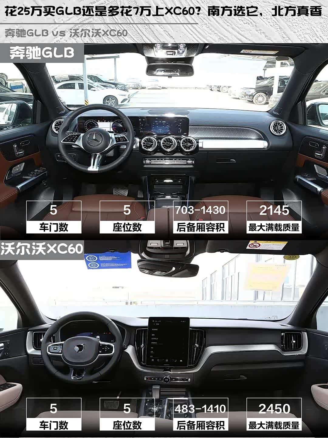 要品牌溢价+灵活大空间选GLB,要安全环保+动力操控选XC60。如果是南方城市家用,GLB性价比更高;北方或多雨雪地区,XC60的四驱更实用。对了,GLB的氛围灯夜晚效果绝了,XC60的水晶挡把质感无敌,你们更看重哪点?