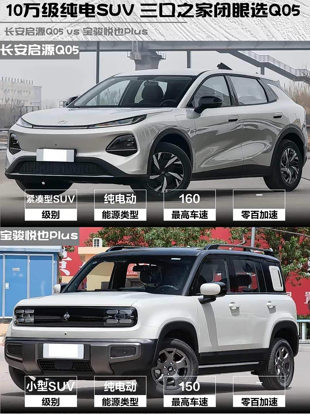车家号·0浏览·2026-02-19 08:51 · 北京【纯电SUV对决】长安启源Q05 vs 宝骏悦也Plus(参数|询价),10万级谁更香?💰