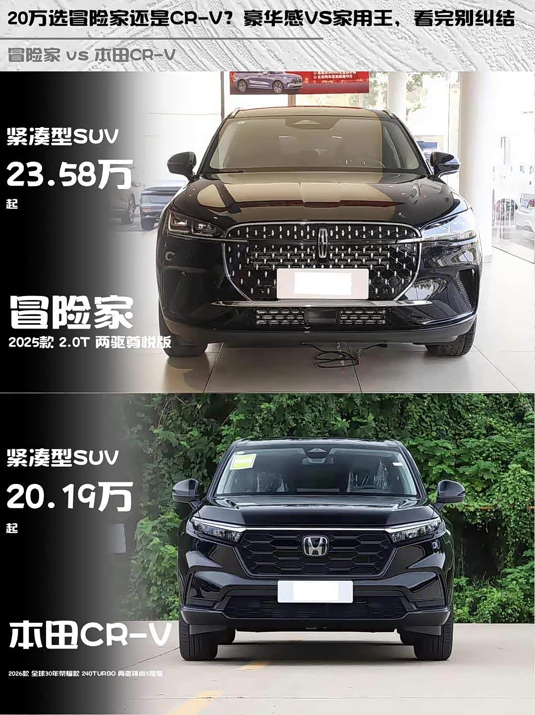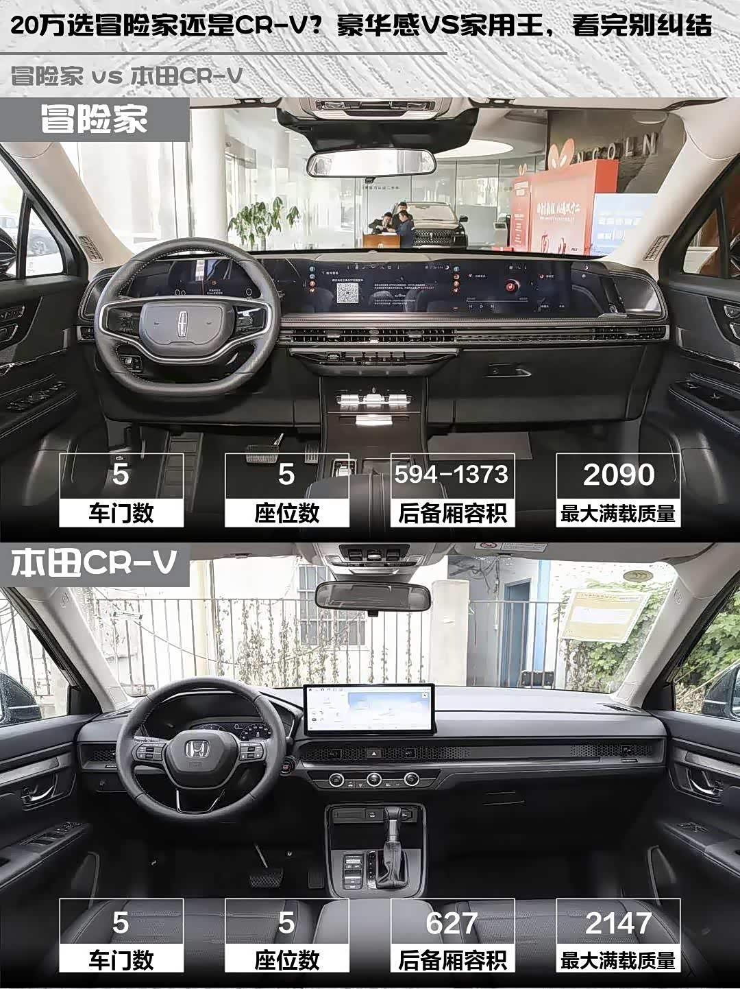 最近在纠结20万级SUV选豪华感还是实用性?刚好深度体验了林肯冒险家2025款2.0T两驱尊悦版和 本田CR-V(参数|询价) 2026款锋尚5座版,分享些干货对比感受👇