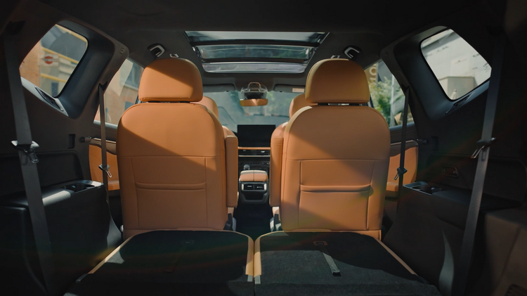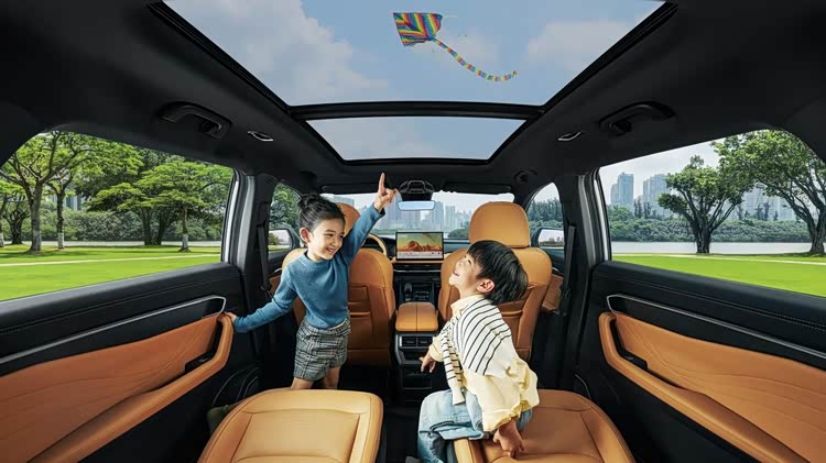 进入第三排,空间表现是核心。886mm的腿部空间意味着身高175cm的成年人正常坐姿下,膝盖与前排座椅仍有一拳以上的余量,不会出现“顶腿”的尴尬;964mm的头部空间让高个子乘客也能保持自然坐姿,无需“缩脖子”;1420mm的肩部空间则保证了两人并排乘坐时,手肘不会频繁“打架”。更重要的是,第三排两个座椅均可独立进行8挡靠背调节,无论是想靠后小憩还是保持直立看风景,都能找到最舒适的角度,这在同级7座SUV中并不常见。