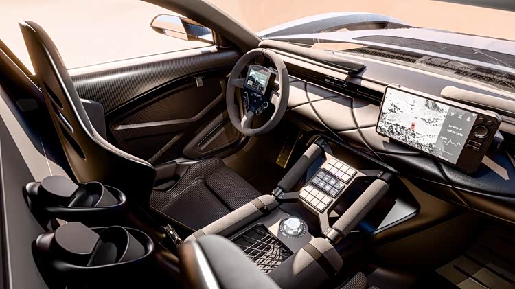 这款概念车最令人震撼的是其动力核心:一台能爆发出1115马力(约1100匹) 及117.6kgm峰值扭矩的高性能V8发动机。配合18英寸防脱轮圈与定制的40英寸巨型越野轮胎,配置了Brembo赛车级制动系统,使其具备了征服沙漠等极端地形的强大潜力。个性的外观和强大的动力,让该车成为了面向阿联酋富豪的终极玩具。