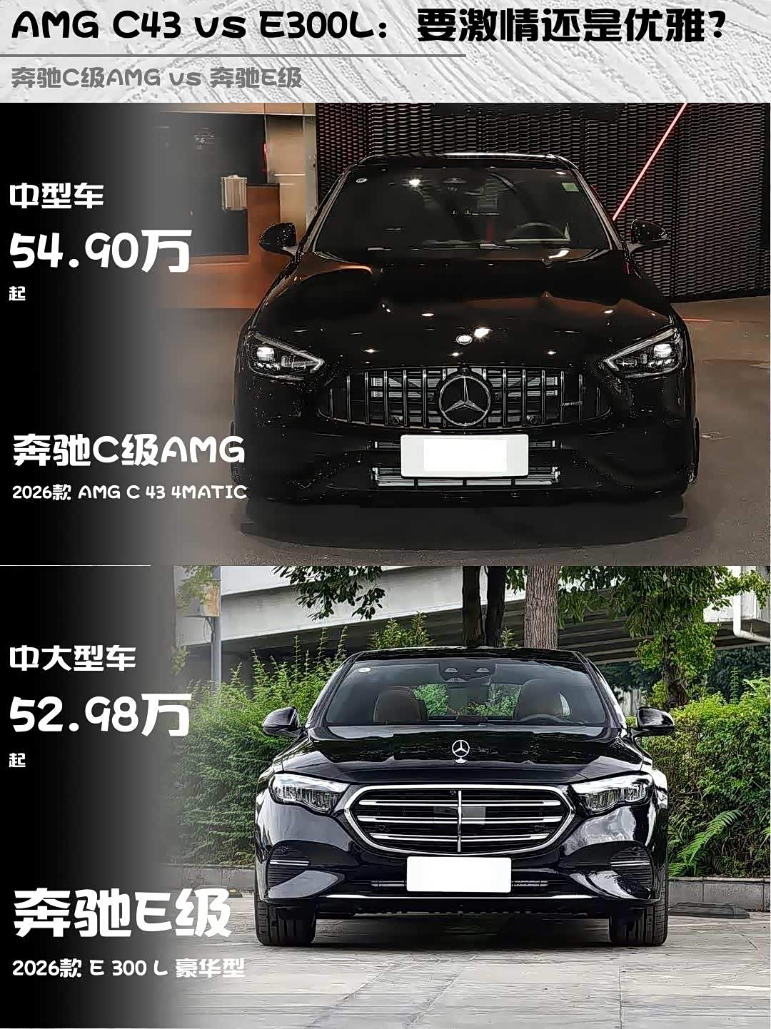 奔驰C级AMG(参数|询价) 2026款 AMG C 43 4MATIC vs 奔驰E级 2026款 E 300 L 豪华型,谁才是你的心头好?🔥