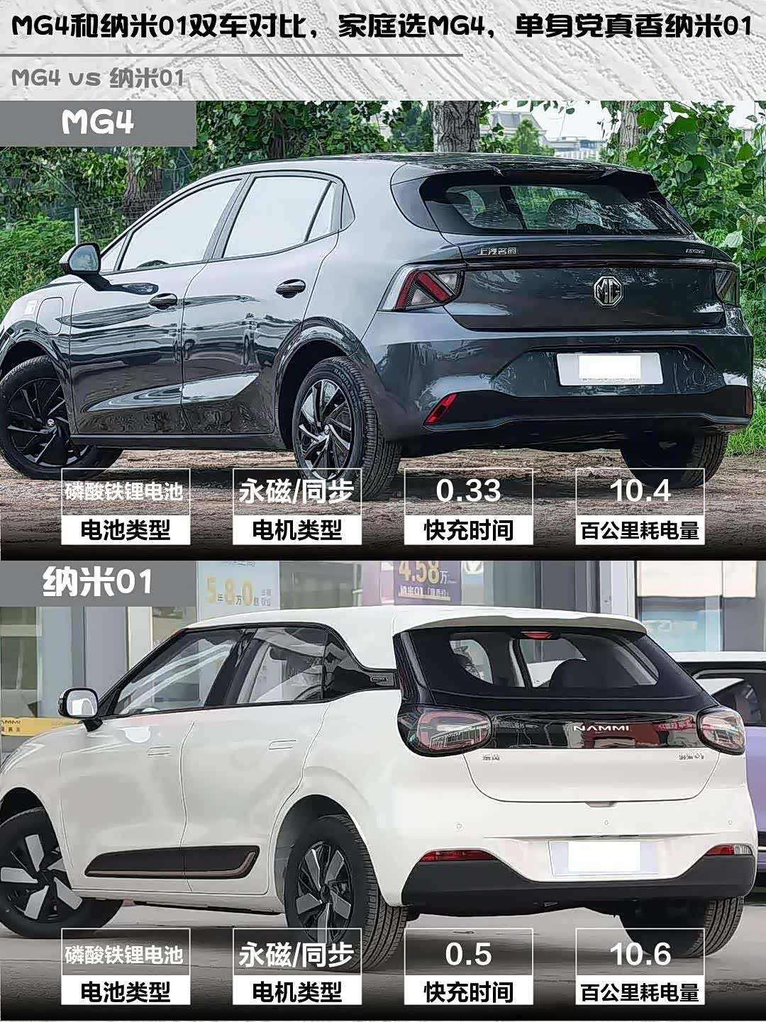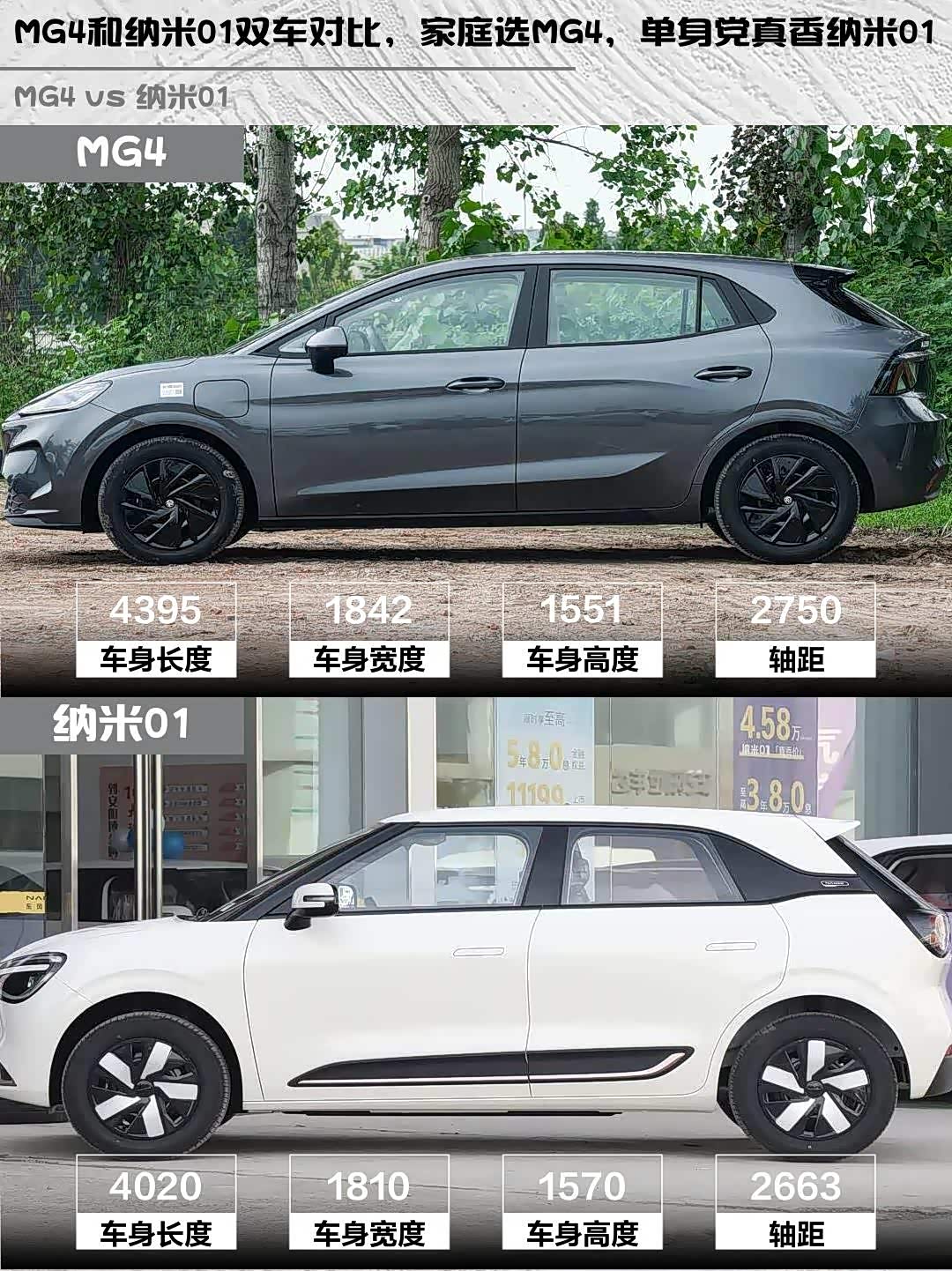 - 家庭用户推荐MG4,后备箱能装;单身贵族纳米01更灵活