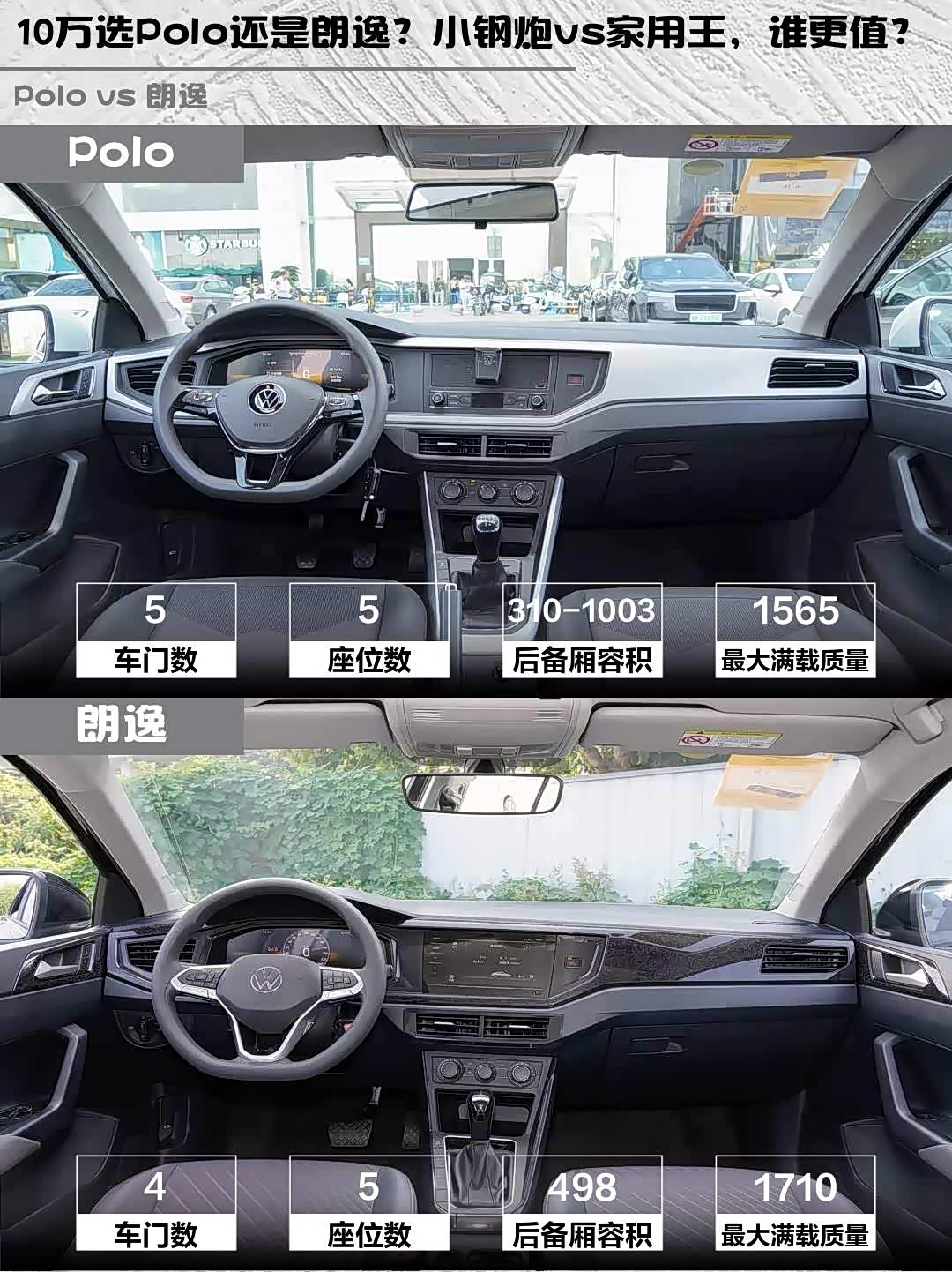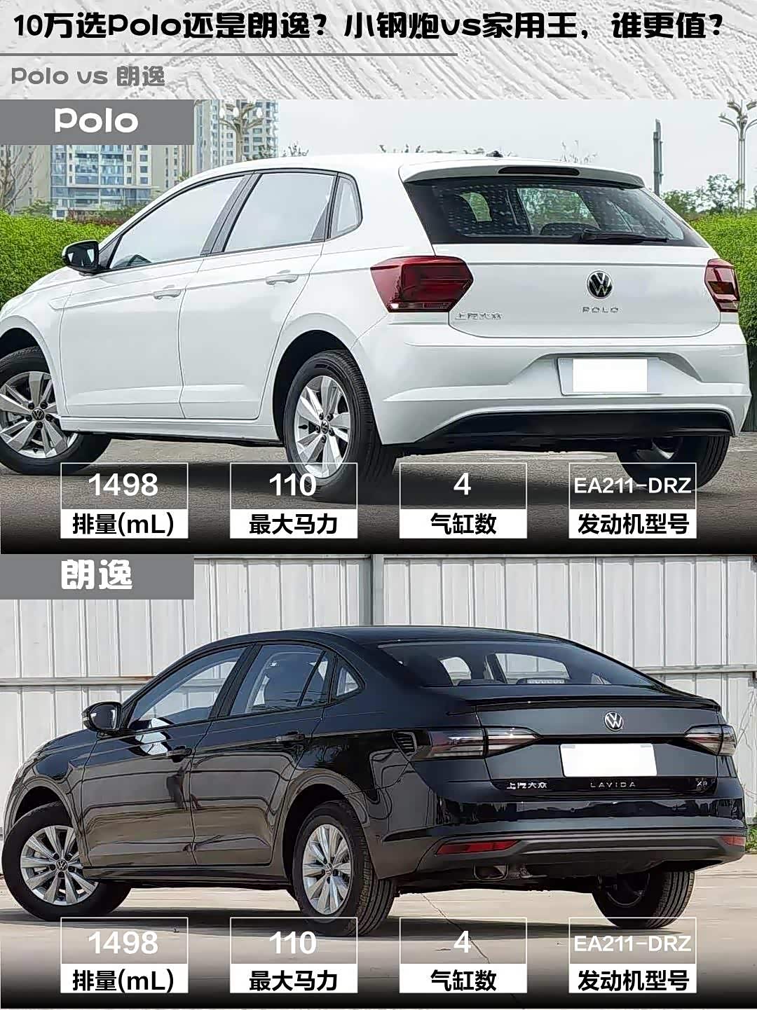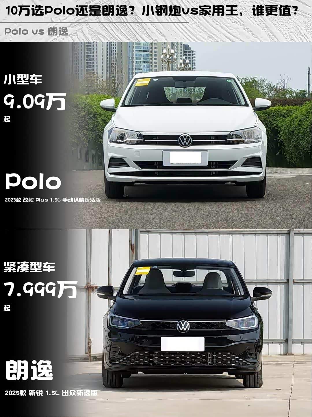 最近后台好多兄弟在问:预算10万左右,Polo 2023款 改款 Plus 1.5L 手动纵情乐活版和 朗逸(参数|询价) 2025款 新锐 1.5L 出众新逸版怎么选?今天直接上干货对比!🔥