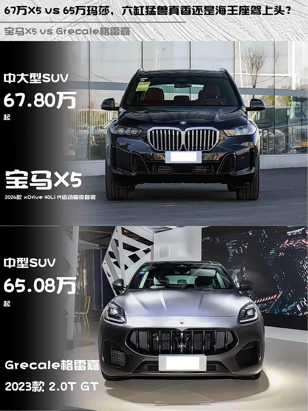 最近在纠结宝马X5 2026款 xDrive 40Li M运动曜夜套装和玛莎拉蒂Grecale 2023款 2.0T GT的兄弟看过来!深度体验后掏心窝子分享👇