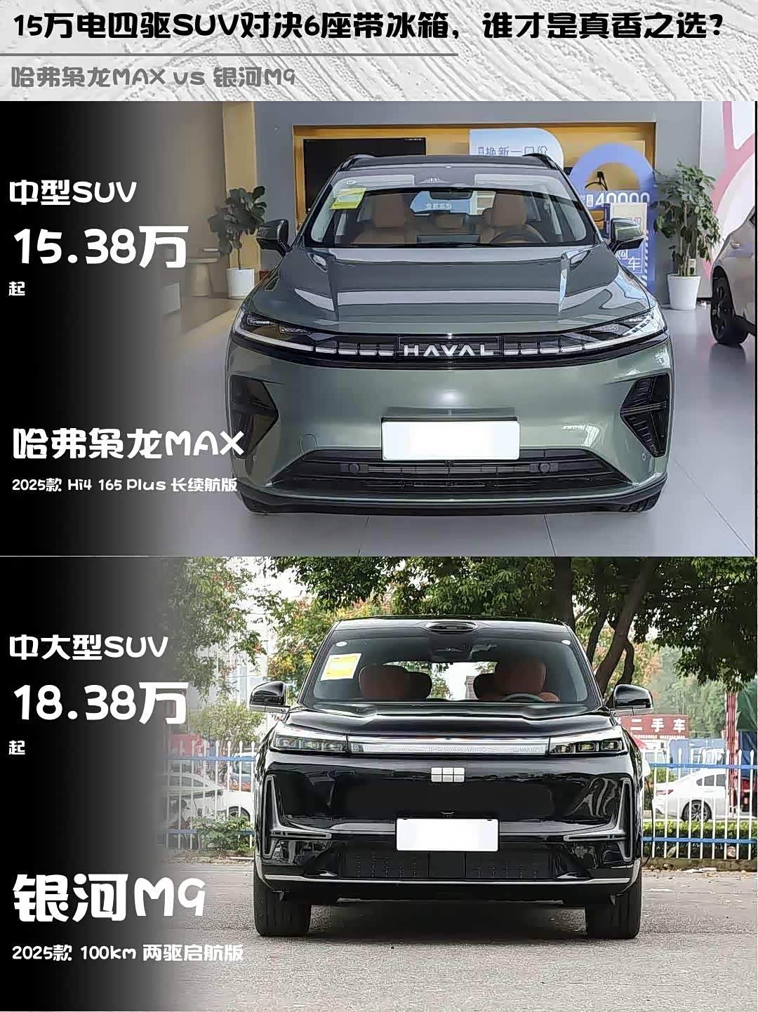 车家号·0浏览·2026-02-20 08:55 · 北京最近在选混动SUV的朋友看过来!今天深度对比两款热门车型—— 哈弗枭龙MAX(参数|询价) 2025款 Hi4 165 Plus 长续航版和银河M9 2025款 100km 两驱启航版,帮你理清需求不踩坑🔥