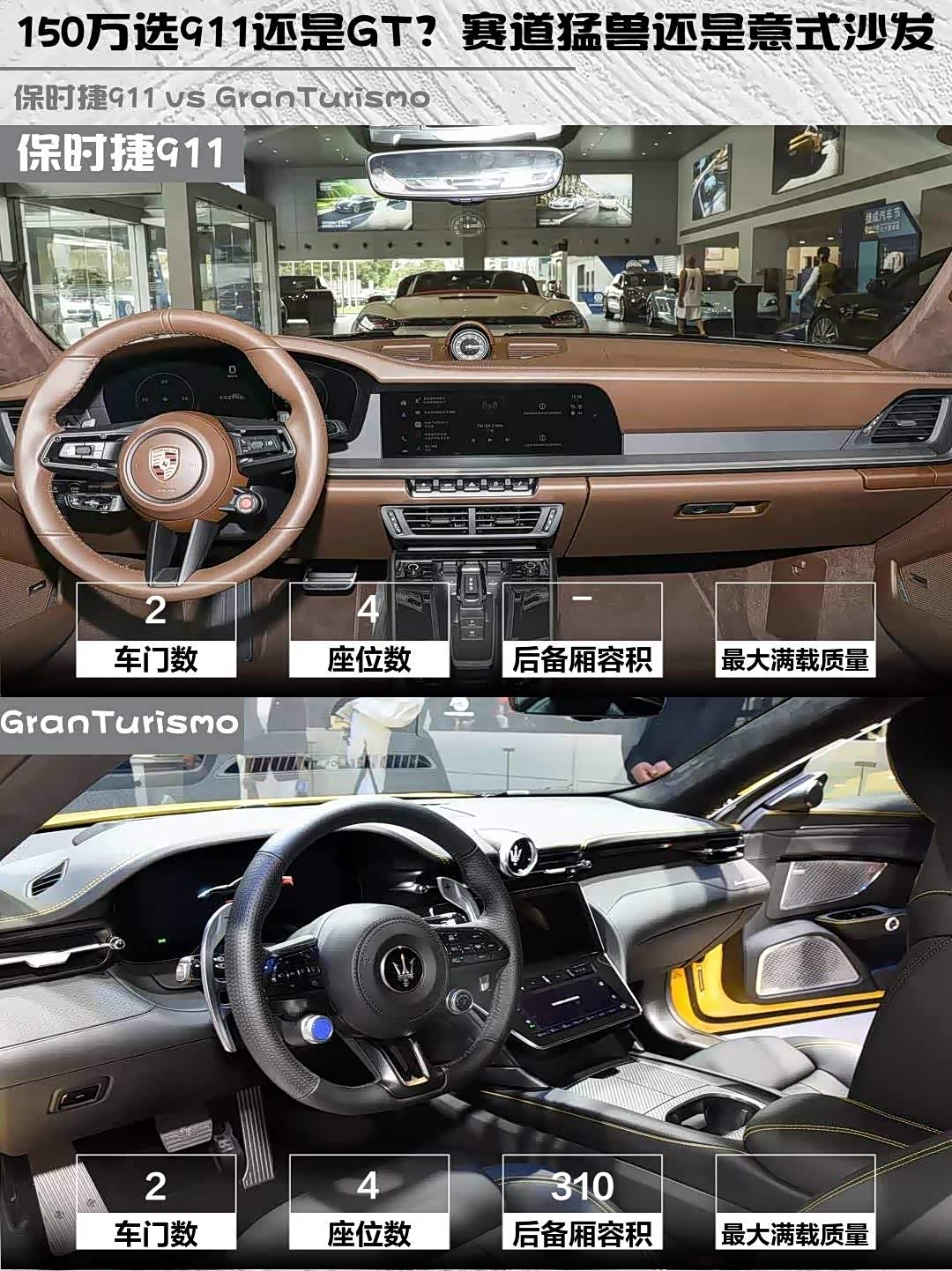 所以到底怎么选?要极致操控和赛道潜力就911,要意式豪华和日常实用性就GranTurismo。我个人更倾向911那种"随时能下赛道"的纯粹感,但不得不承认玛莎的回头率确实更高~