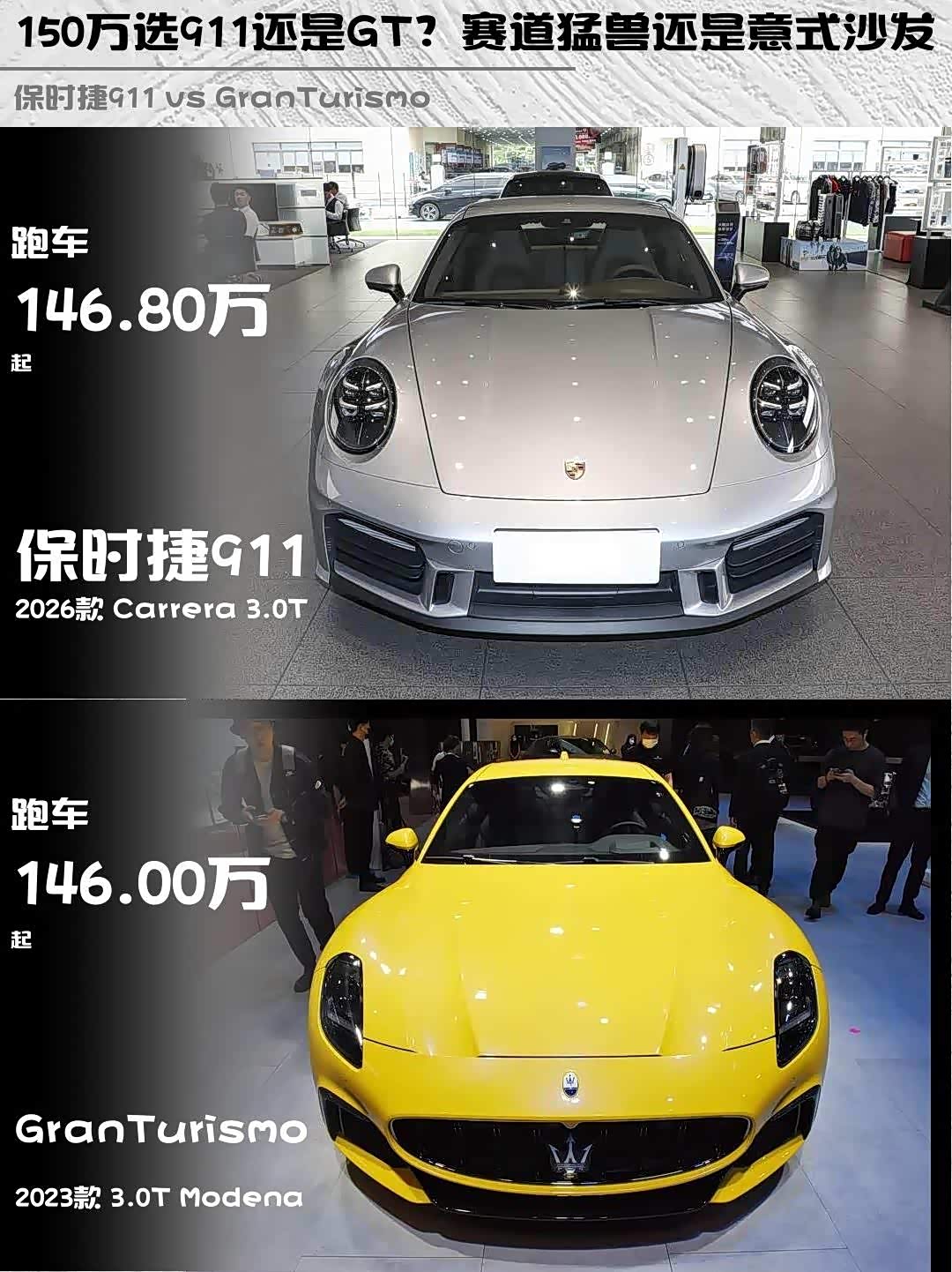 最近后台好多人在问保时捷911 2026款 Carrera 3.0T和 玛莎拉蒂GranTurismo(参数|询价) 2023款 3.0T Modena怎么选?作为深度体验过两台车的老司机,今天就从真实体验角度聊聊这对150万级跑车的相爱相杀!🔥