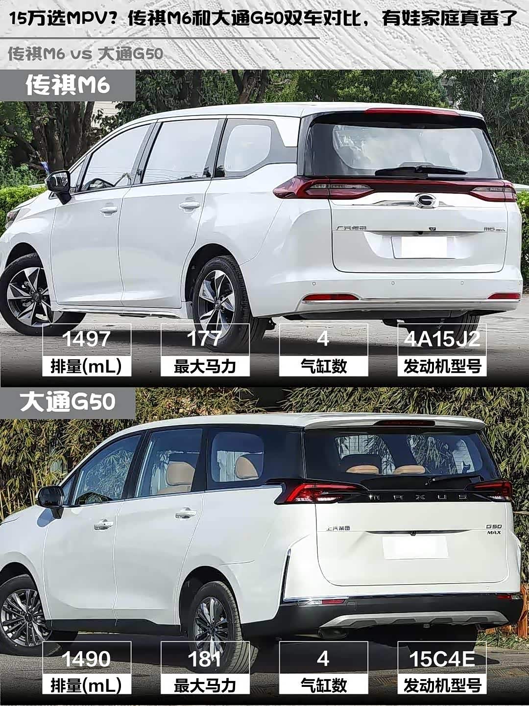 传祺M6 2025款 MAX 270T WDCT 豪华版 vs 大通G50(参数|询价) 2025款 MAX 1.5T 自动豪华版,谁才是15万级家用MPV的性价比之王?🤔