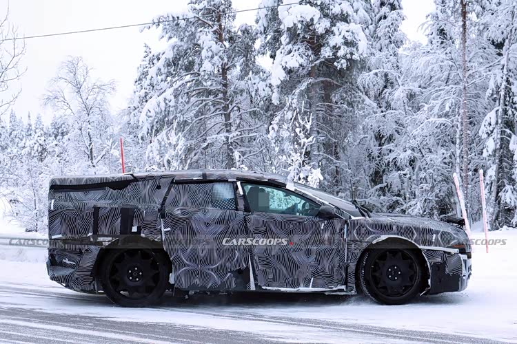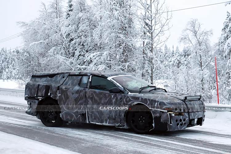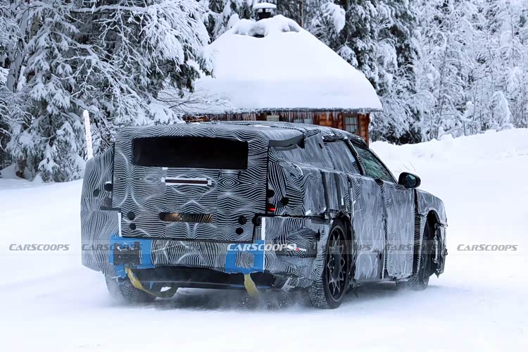 侧面造型方面,车身后半部分的线条明显经过了伪装,车顶可能会采用溜背式造型,而且B柱位置能够看到门把手,意味着它会和法拉利Purosangue一样采用前后对开门设计,轮毂采用了多幅式星芒熏黑造型,风格非常大气,整体姿态感应该会营造的非常到位。