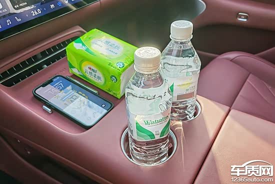 评测车前排杯架前方配备了1个手机无线充电板,位置设计合理,驾驶员拿放手机方便。充电功率为50W,不仅配备散热口,还支持语音和中控屏控制开启或关闭,实用性表现可圈可点。