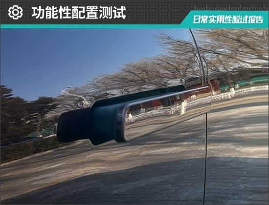 评测车的左/右外后视镜均采用双曲率镜片,经实测,左、右外后视镜视野范围分别为28.1°和19.5°,在测试过的同级别车型中分别处于中上游和中游水平。