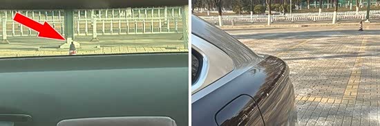 后方视野测试中,依旧将桩桶固定摆放,随后移动车辆直至可以观察到桩桶上沿为止。经实测,评测车后方视野所测得的距离为17.055m,在测试过的同级别车型中处于中下游水平。
