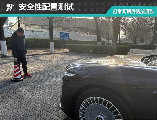 在前方视野测试中,我们采用高70cm的桩桶作为参照物,随后调整车距,直至在主驾驶位可以看到桩桶上沿。经过测试,桩桶与车头最终测得的数据为2.195m,在测试过的同级别车型中处于中游水平。