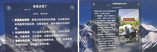 经过实测,系统可以正确执行“打开副驾车窗”和指着副驾车窗说“打开这个”指令,且反应速度较快。对于“我有点饿了”和“我有点不太舒服”的指令,系统也可以理解,并通过语音播报和屏幕文字显示两种方式给出一些建议,但并没有进一步的动作,比如推荐饭店或诊所等。对于“导航到北京站东街”这样容易混淆的复杂指令,系统能够排除干扰正确理解。此外,对于“导航到附近大众点评得分4.5分以上的川菜馆”指令,系统也能给出正确的回复。智能交互方面,系统可以正确执行“岚图追光 L都有哪些亮点?哪款配置性价比最高?”和“请介绍一下车质网”指令,并通过语音播报和屏幕文字显示两种方式给出相应的答案。此外,评测车支持四区域语音唤醒识别、语音免唤醒词、可见即可说和语音连续识别,便利性表现较好。