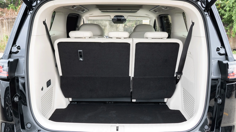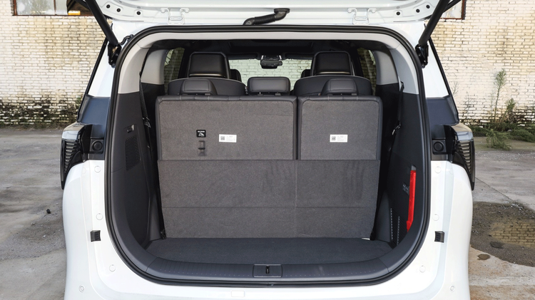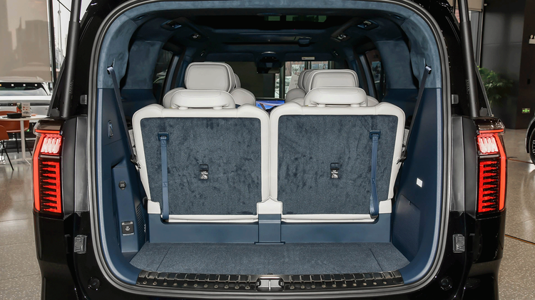 其首创的“777”空间哲学更是一大亮点——满载7名1.8米成人时,仍可容纳7个登机箱+7个双肩包,这对于节假日全家出行来说尤为实用。后备箱常规容积410L,可放下2个28寸行李箱+婴儿车,虽常规容积略小,但第三排放倒后容积拓展至1740L,能轻松放下露营装备、大件玩具等,兼顾了日常使用和长途出行的载物需求。