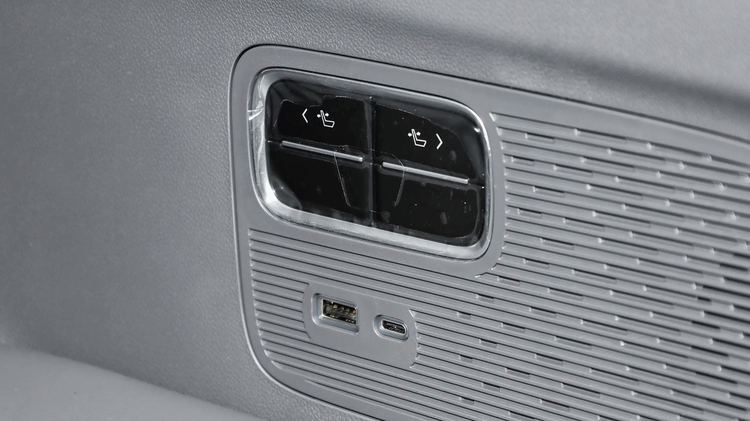 功能性方面,岚图梦想家EV的第三排座椅配备电动调节功能,两侧配备USB-A接口,可惜的是没有配备加热/通风功能,不过还好配备了手动遮阳帘,夏季乘坐时后排不至于太过闷热。另外车内储物空间设置较少,小物件的收纳便利性略逊于极氪009。