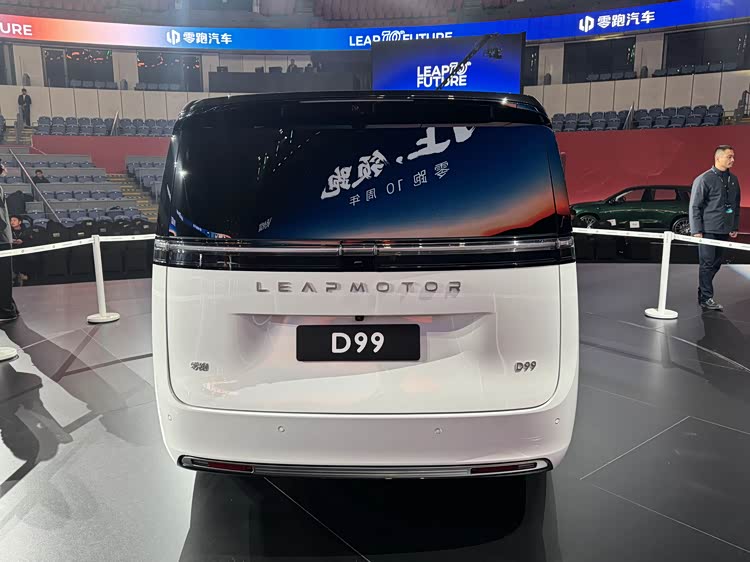 在内饰方面,我们可以看到零跑D99的内饰采用极简化的布局方式,新车采用的是悬浮大屏布局,它还有悬浮式的仪表盘,新车的副驾驶的一侧采用的是极简化的很有层次感的面板装饰。新车的方向盘的造型很家族化,它的前侧中央通道的位置采用极简化的布局方式,前侧有水杯架,后侧有对开式的储物格,内部肯定会有冰箱的布局。新车的第二排的两个独立的航空座椅有,它的空间表现也是非常的不错,并且新车还会有第二排的折叠大屏,还会有制氧设备,并且搭载双高通8797芯片,它的驾驶辅助以及座舱会有一个不错的表现。