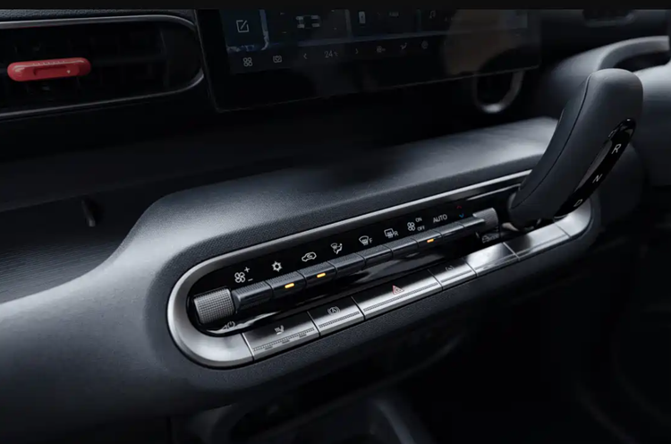 新车采用了三辐式方向盘+悬浮式液晶仪表和中控大屏的组合,整体比较简洁,但保留了大量实体按键。比较有特点的是那个复古的挡把,设计在了中控屏幕下方,空调按键旁边。既方便操作,也为中控区域留出了更多的储物空间。