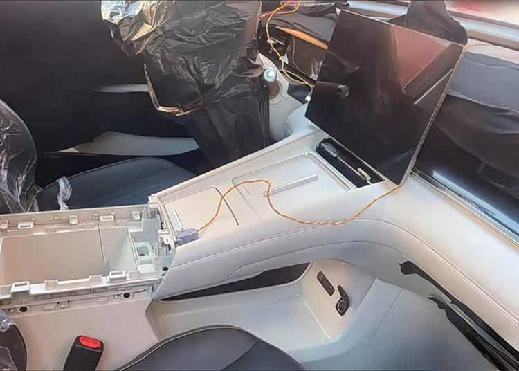 从目前曝光的内饰谍照来看,新车的中控台采用了T形布局,中间是悬浮式的中控大屏,副中控台上部带有手机无线充电板,底部是镂空的储物空间,提供了USB接口和点烟器接口等。