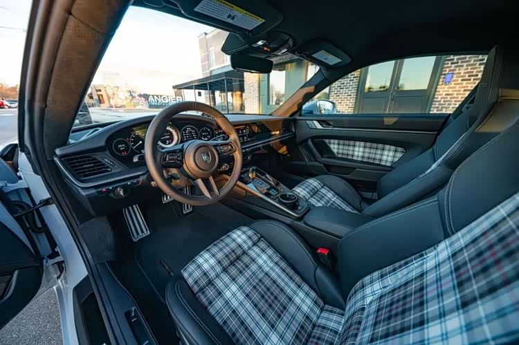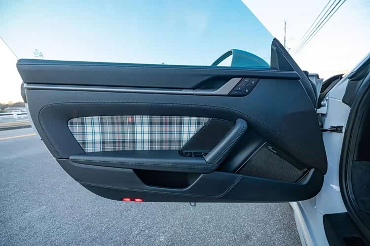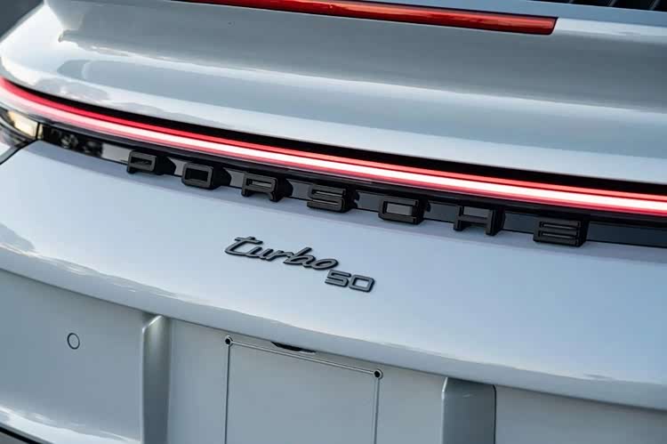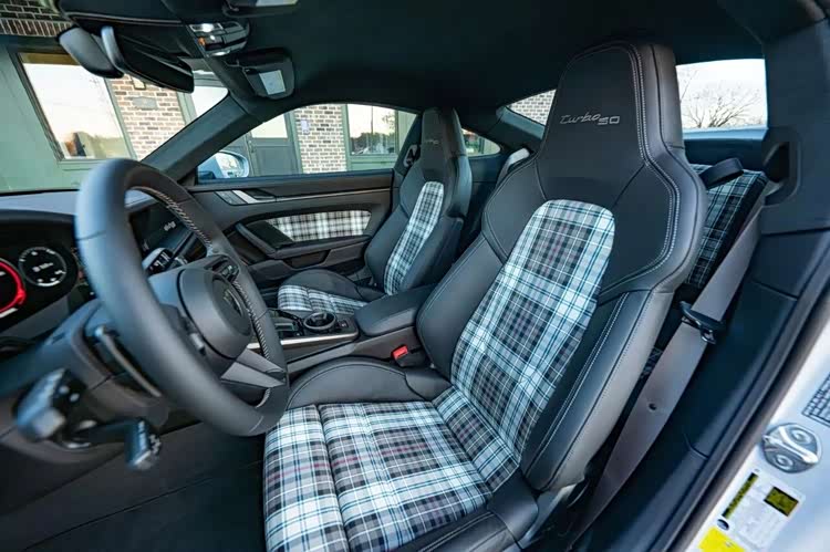 内饰的专属设计与豪华配置同样诚意拉满,中控台镶嵌专属纪念铭牌,直接彰显其限量版身份。主驾副驾均配备18向电动调节运动增强型座椅,黑色真皮包裹搭配格纹织物拼接,座椅头枕处还绣有“Turbo 50”专属标识,经典与精致兼具。