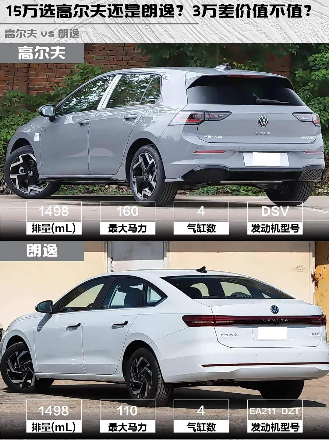 高尔夫1.5T+7DCT的组合,160马力随叫随到,S档降档补油的声音简直让人上头!实测8.5秒破百,市区超车像吃德芙一样丝滑~而朗逸1.5L自吸只有110马力,虽然6AT平顺性不错,但满载开空调爬坡时真的会让人想下车推一把...😅
