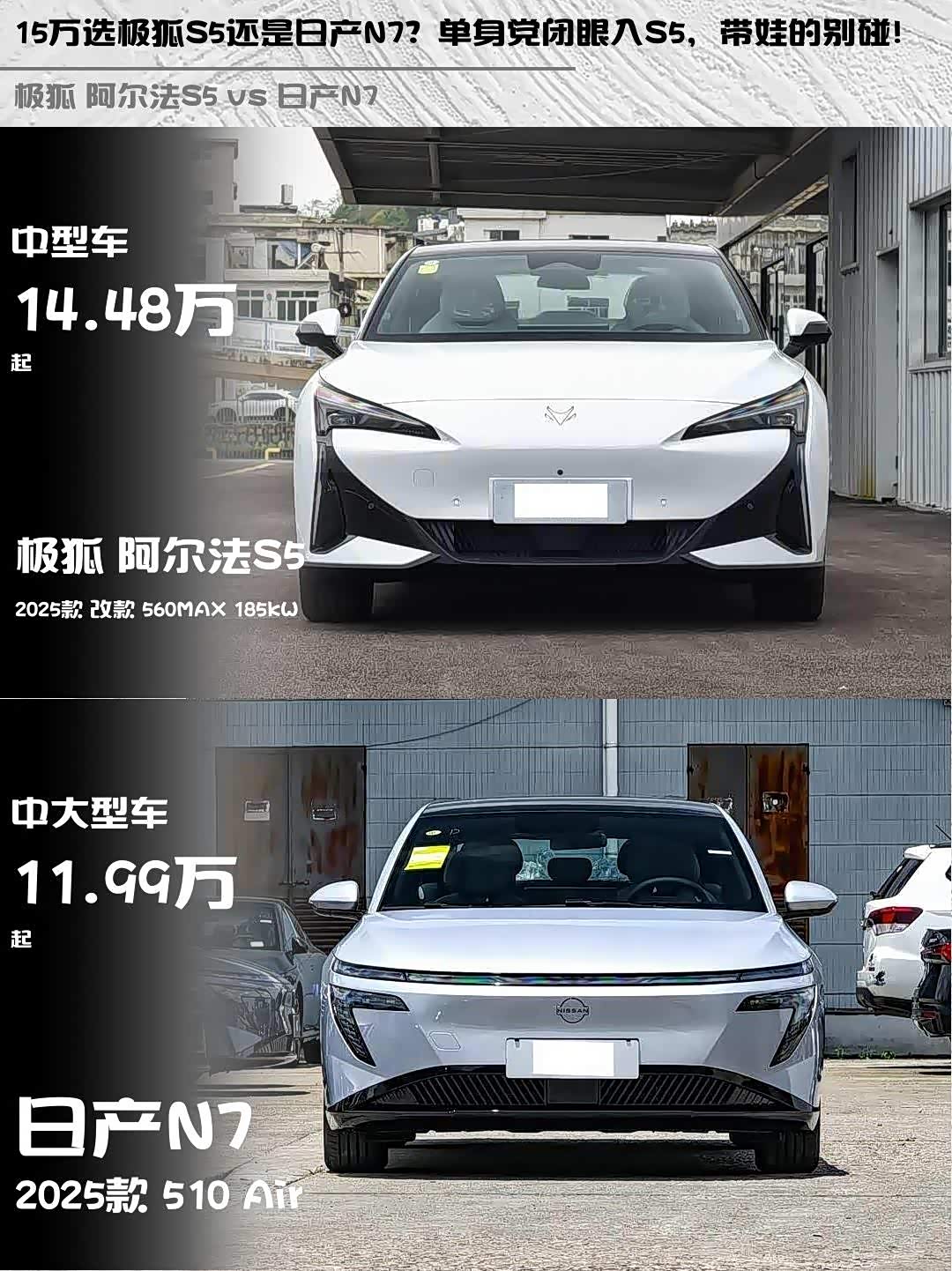 最近在15万级纯电轿车市场纠结了好久,最终锁定了两款热门选手—— 极狐 阿尔法S5(参数|询价) 2025款 改款 560MAX 185kW和日产N7 2025款 510 Air。深度试驾后给大家来个硬核对比,看完就知道哪款更适合你!🔥