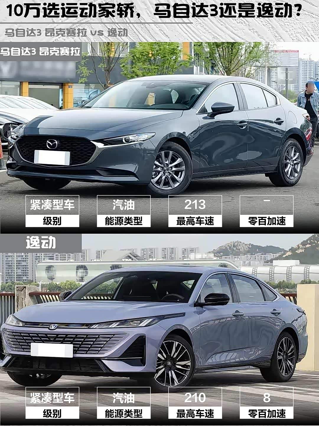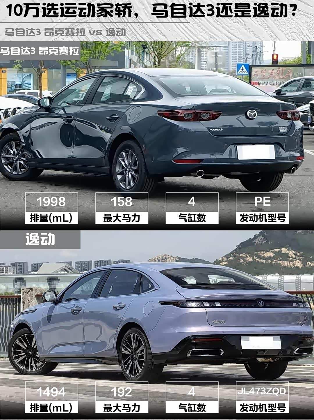 最近后台好多兄弟在问10万预算买运动家轿, 马自达3 昂克赛拉(参数|询价)2025款2.0L自动质擎版和逸动2026款1.5T智享型怎么选?今天直接上干货对比!🔥
