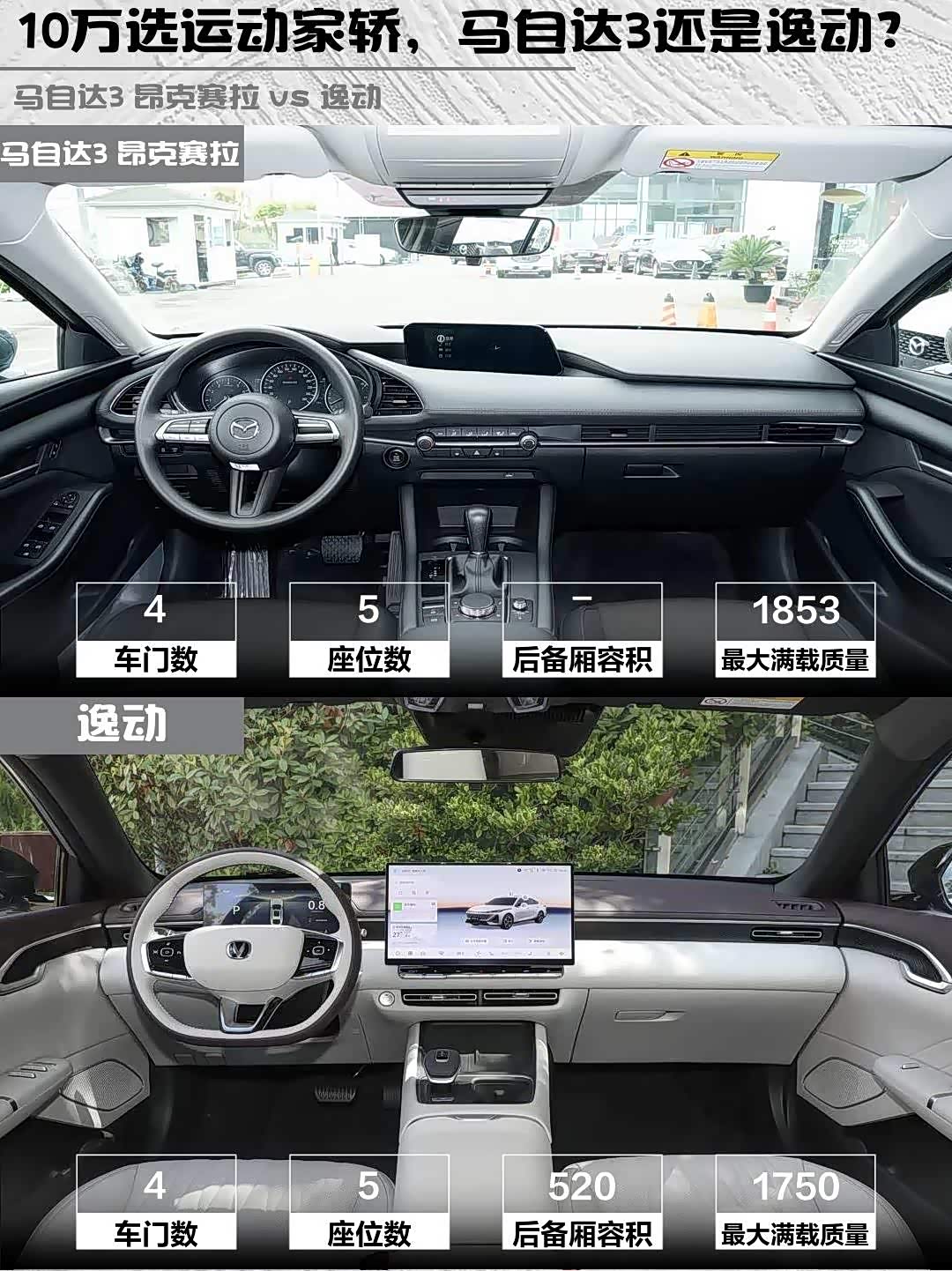 逸动4785mm车长+2765mm轴距碾压马3,后排能跷二郎腿,520L后备箱能塞露营装备。马3后排确实局促,但前排包裹性电竞座椅yyds,单身贵族或小两口完全够用~