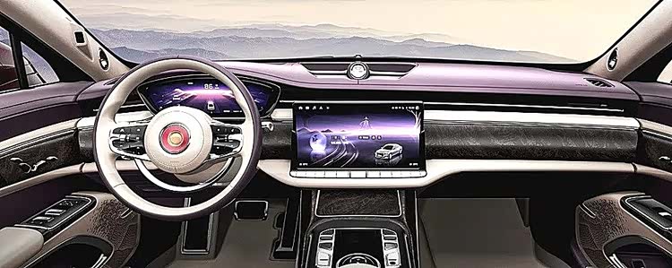 智能座舱方面,红旗国雅采用中轴对称布局,体现了东方“中和”之美。最引人注目的是中控台配备的14.2英寸柔性卷轴屏,科技感与仪式感并存。