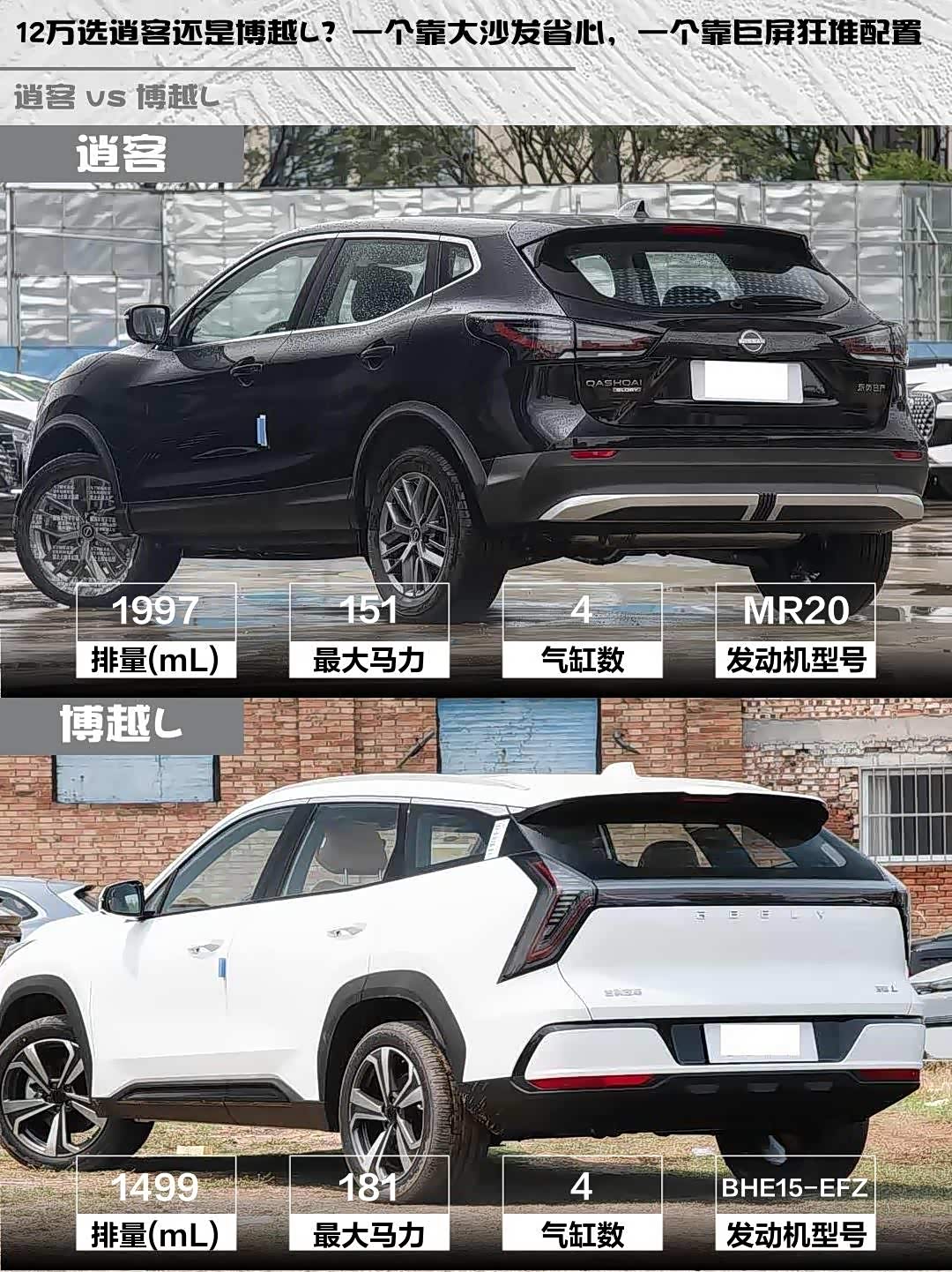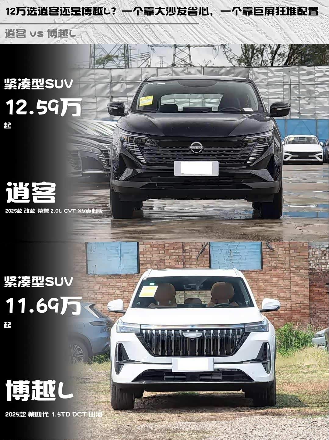 车家号·0浏览·2026-02-21 08:30 · 北京最近后台好多朋友在问12万级SUV怎么选,今天直接拉出两款热门选手——逍客 2025款 改款 荣誉 2.0L CVT XV真心版和 博越L(参数|询价) 2025款 第四代 1.5TD DCT 山河,给大家来个硬核拆解!🔍