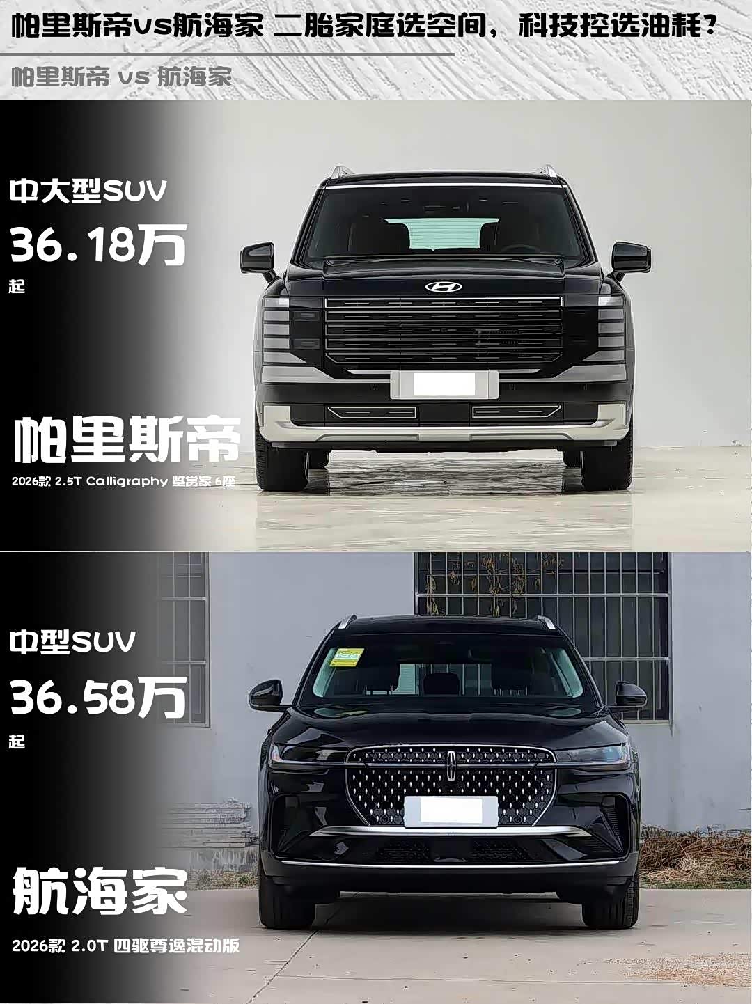 最近在选车,纠结 帕里斯帝(参数|询价) 2026款 2.5T Calligraphy 鉴赏家 6座和航海家 2026款 2.0T 四驱尊逸混动版,深度试驾后分享点干货感受!🚗💨