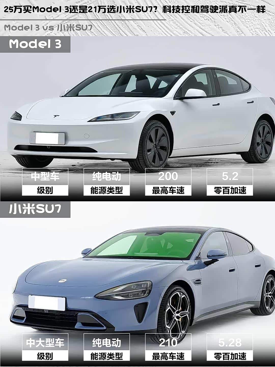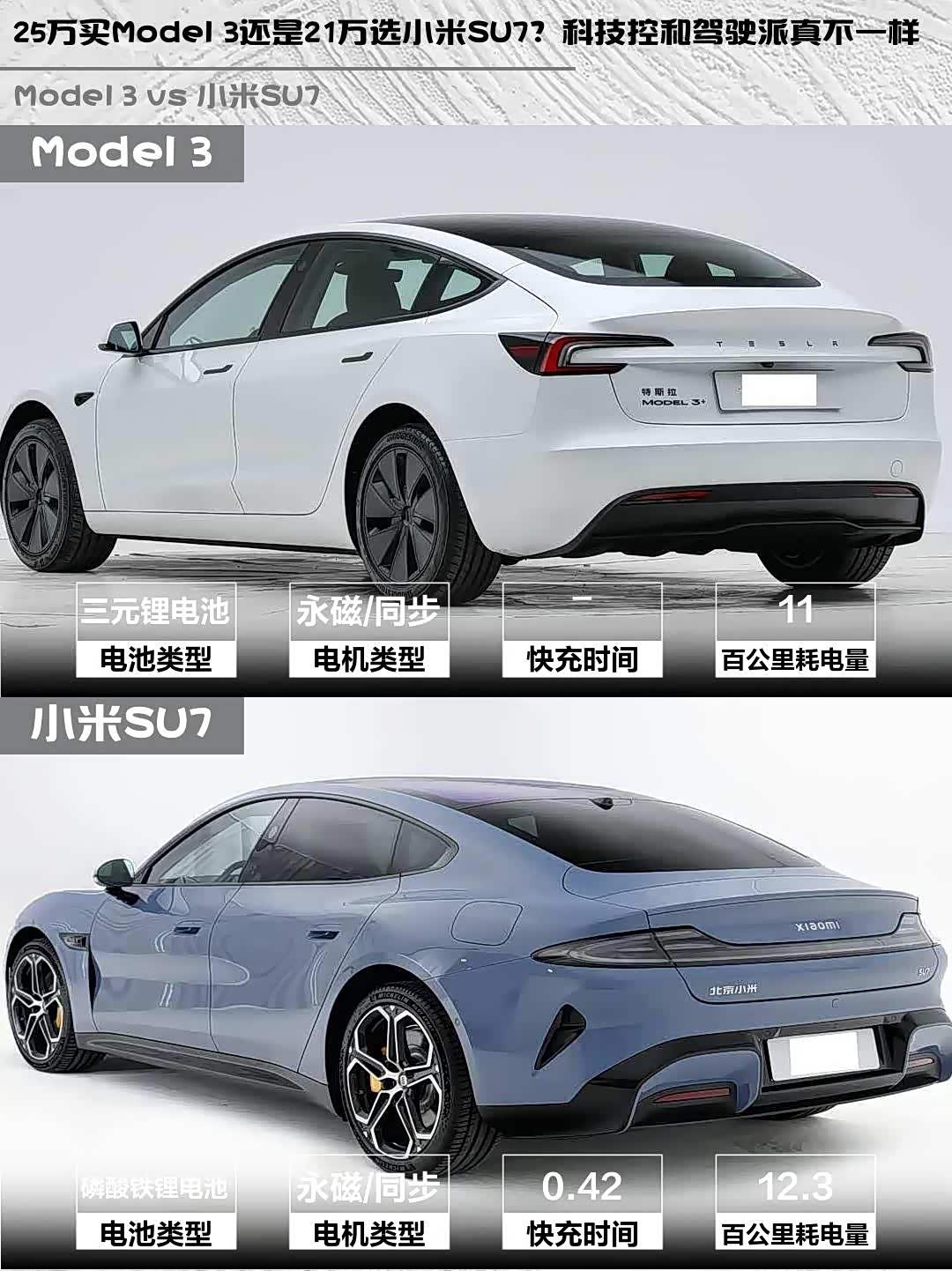 最近后台好多人在问Model 3 2025款改款长续航版和 小米SU7(参数|询价) 2024款后驱长续航智驾版怎么选🤔 作为深度体验过两台车的“电动控”,今天就从真实用车场景展开聊聊这对“25万级顶流”的差异化表现!