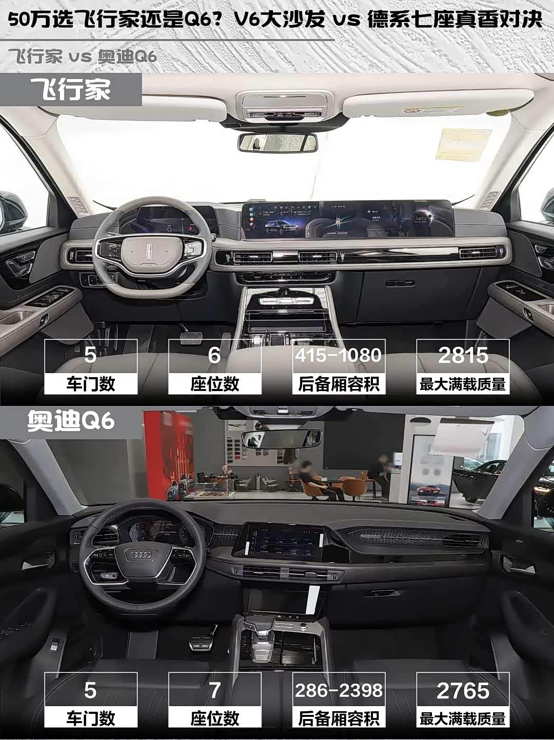 - Q6七座布局更灵活,三排实测能坐下1.75m成人,二三排全放倒直接变身2.4米"移动大床房"。但座椅填充偏硬,长途舒适性稍逊。