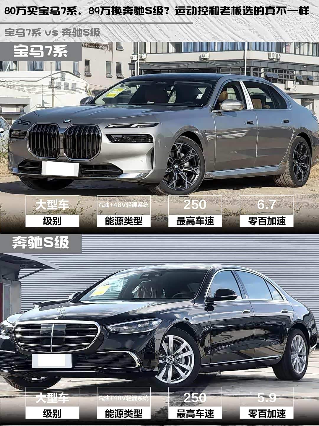 要运动操控选宝马7系,要商务气场选奔驰S级。个人觉得735Li性价比更高,但S级的星徽标自带光环...你们会pick谁?评论区见!(悄悄说:宝马的碧玺灰车漆实车比官图帅十倍!)