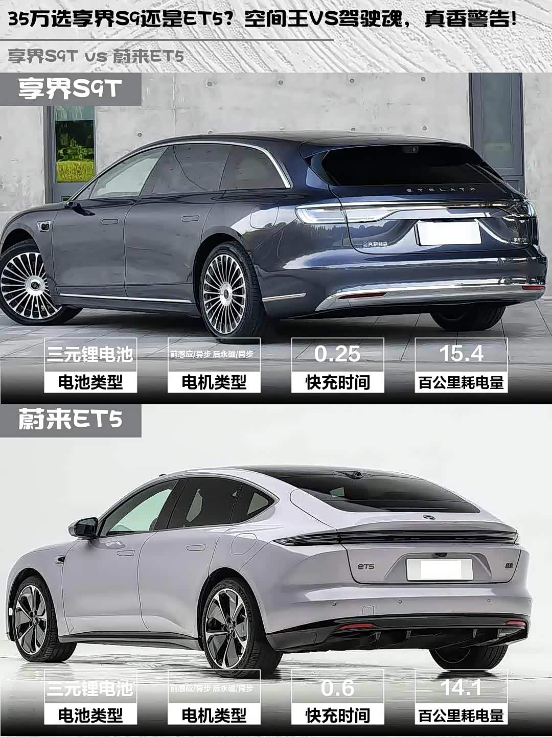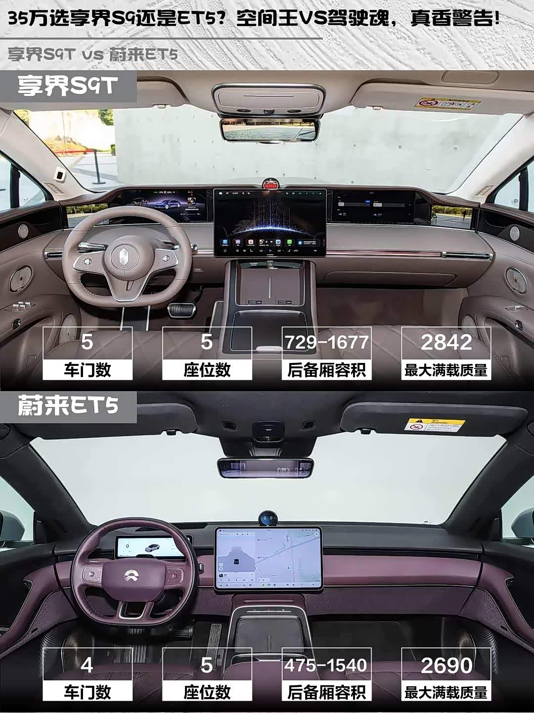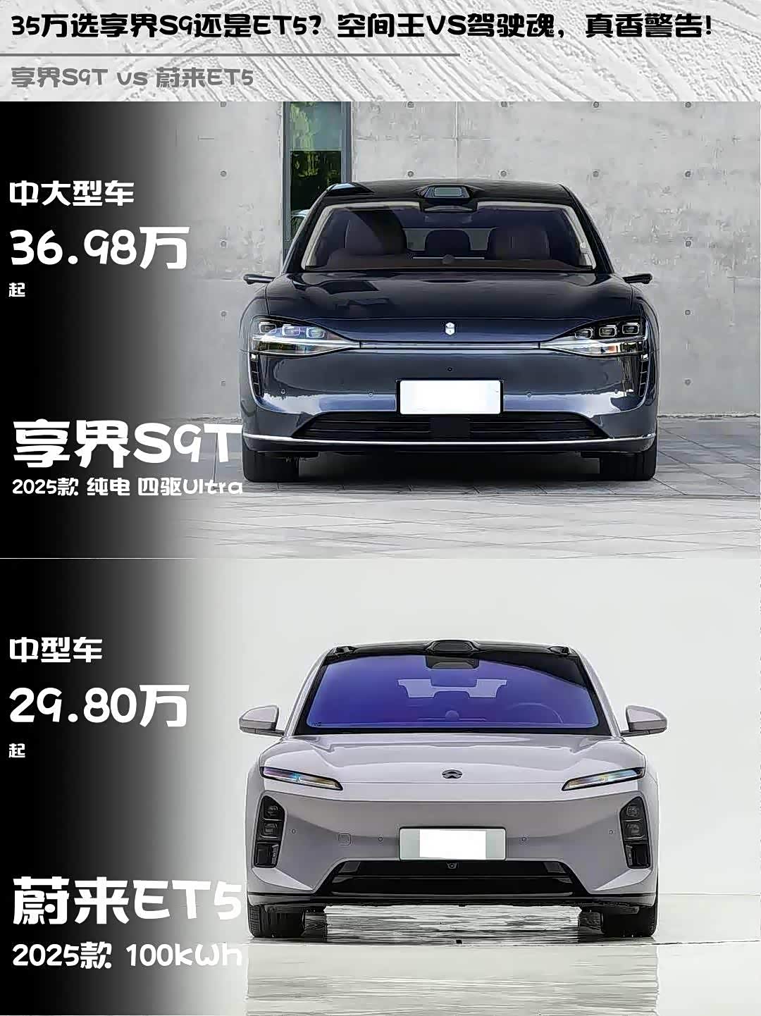 最近深度体验了两台热门纯电车型—— 享界S9T(参数|询价) 2025款 纯电 四驱Ultra和蔚来ET5 2025款 100kWh,作为35万级电动车的代表,它们风格迥异却各有绝活,分享些干货感受给正在纠结的兄弟们👊