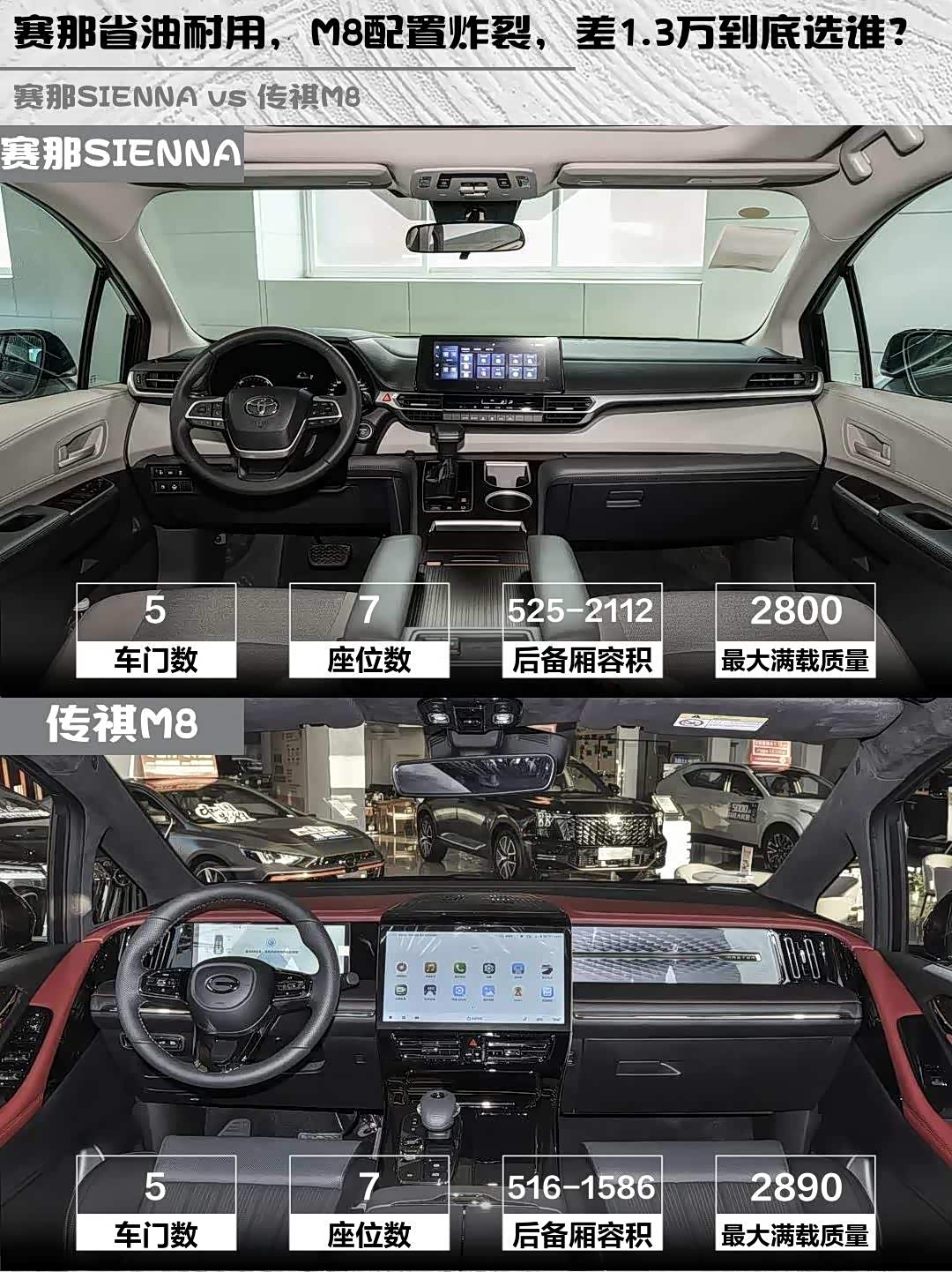 最后说价格:赛那29.98万 vs M8 28.68万,差价1.3万怎么选?要省油耐用选丰田,要配置豪华选传祺。我家最后提了赛那,毕竟二手车保值率摆在那,开三年还能卖个好价钱💰