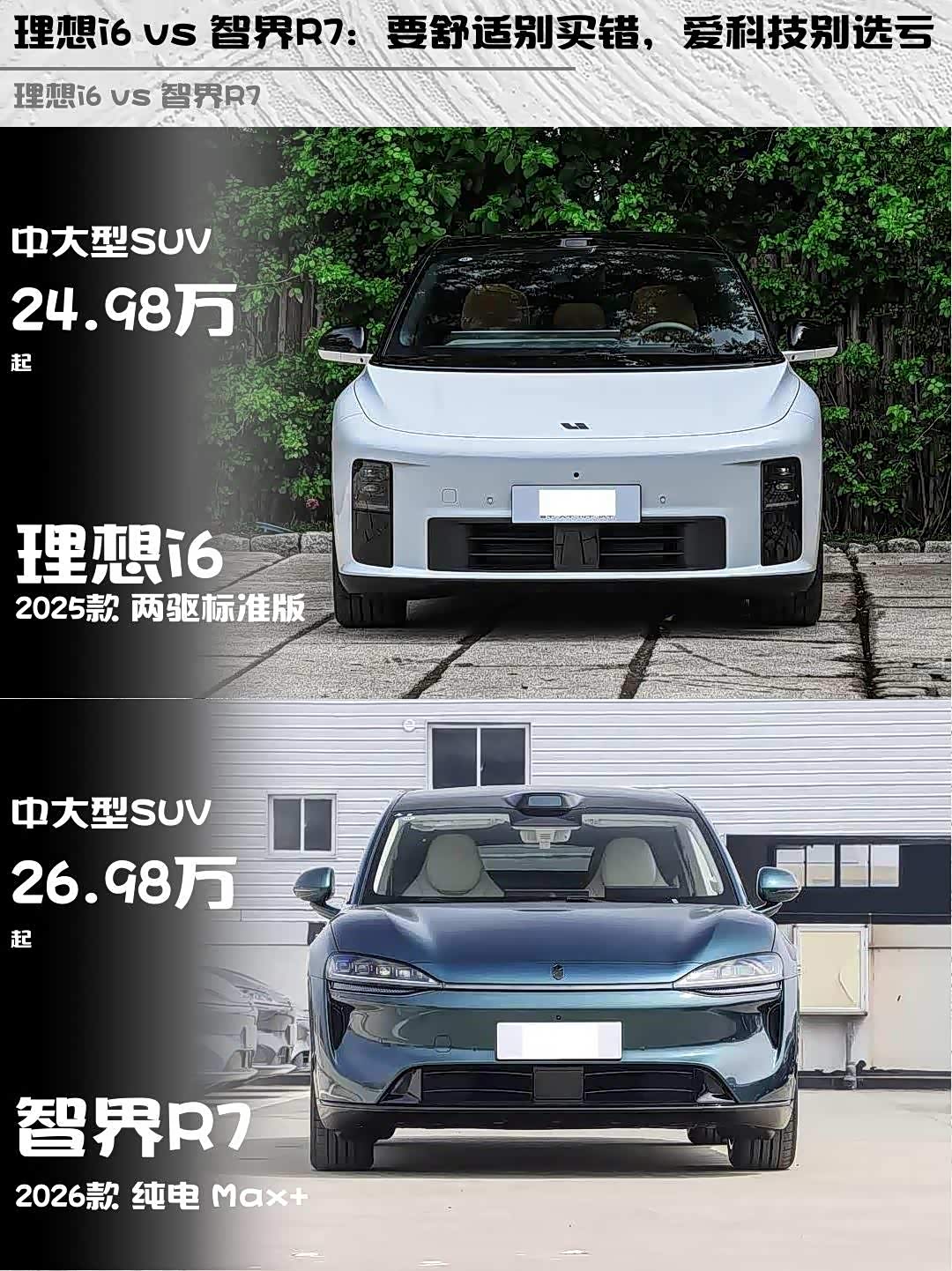 25万级纯电SUV怎么选? 理想i6(参数|询价)和智界R7深度对比来啦!🚗💨