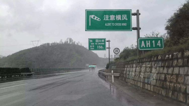 在开车经过桥梁、隧道口、高架、山体两侧这些地方时,提前减速至100km/h以下;如果是长桥梁这类突发阵风高发的区域,减速至80km/h以下。提前减速能大幅减小横风的推力,也能给自己留足反应时间,这是应对横风最有效的方法。