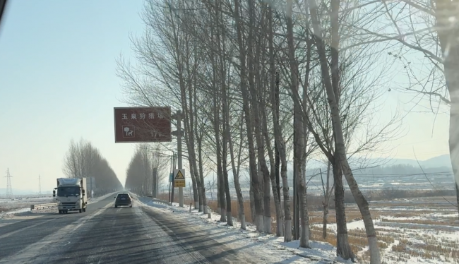因为下雪,路有点滑,我们没敢开的太快,大约1个半小时才到的,这是山门,顺着这个路进去就到了