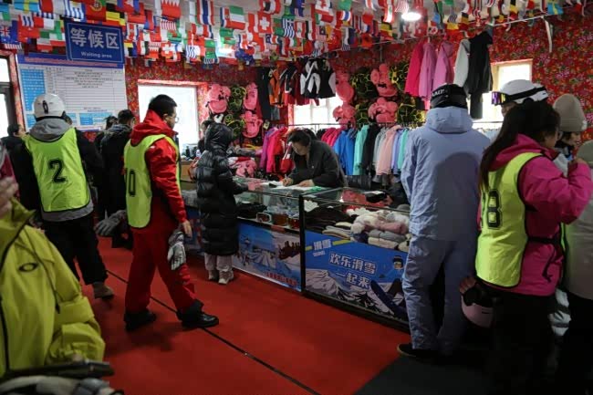 我们是团票,相对便宜一点,合到一个人39.8元,再加上租雪具,雪服,头盔和眼镜是免费的,不过吃的和喝点价格高,我们车里带了一些
