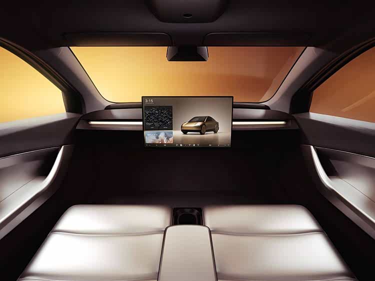 内饰方面是 Cybercab 的一大亮点,该车为了遵循无人驾驶出租车的理念,采用了无方向盘、无踏板的内饰布局,中央仅有一款中控屏。