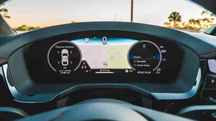 A柱下方的车门进气道装饰也不会缺席,没有加长的版本,其实相当的紧凑,体现出运动的风格,活脱脱的四门911。车尾部分,贯穿式的尾灯造型简洁,主动尾翼当然不会缺席,尾箱线条明显突出,是熟悉的保时捷风味。后保险杠部分双边四出排气扩散器,显示了出色性能的姿态。在内饰部分当然是最新家族风格,悬浮式弧面液晶仪表盘,Hud抬头显示和扁平的中控屏幕形成了三件套,副驾驶侧没有选装娱乐屏,符合海外消费者的喜爱。