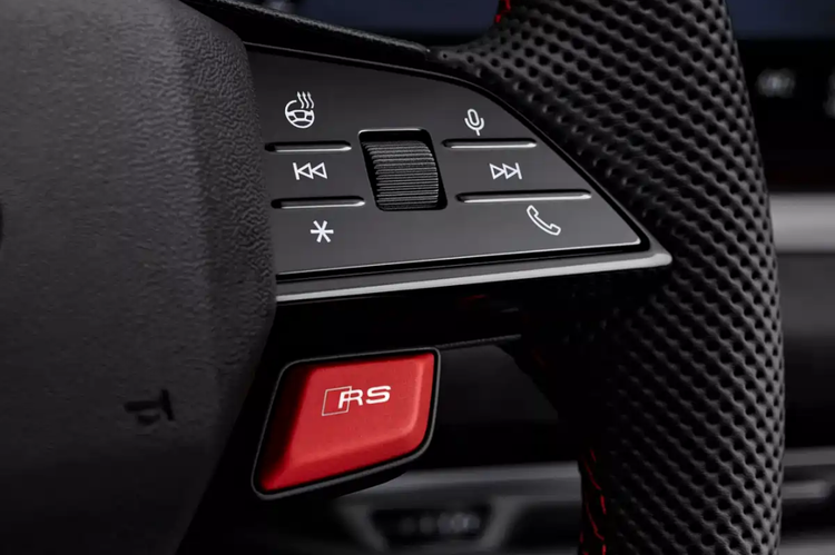 还有一些细节方面,方向盘左右各一个的滚轮正式回归,并且还增加了两个RS红色按键,可一键开启预设模式。驾驶模式除了常规模式外,新增了RS Torque Rear(漂移模式),可强化后驱特性,将最多85%的扭矩导向后轮,变速箱配合锁差速器支持受控的侧滑驾驶,并在车机内集成漂移角度和长度记录。