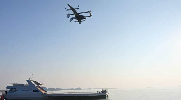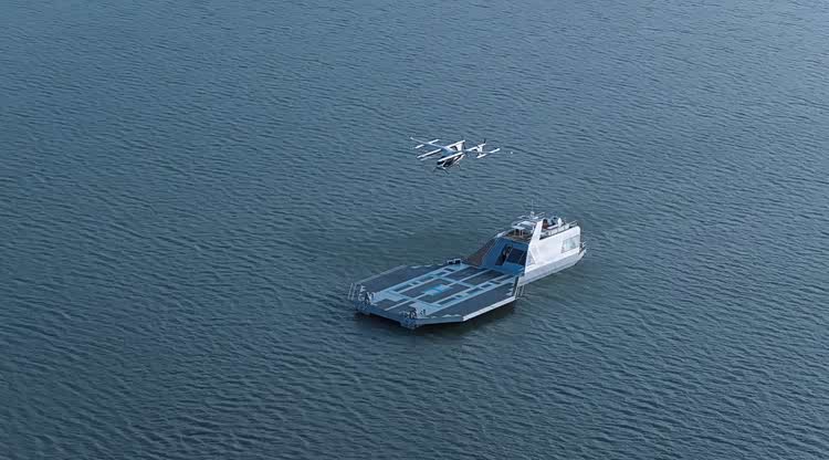 该平台全长36.5米,甲板面积超300平方米,专为eVTOL航空器量身打造,集成起降、停靠、调度等核心功能,突破传统交通基建对陆地资源的依赖。甲板表面铺设高效光伏系统,可为平台运行及航空器充电提供清洁电力,践行零碳运营理念。